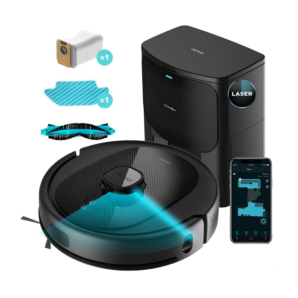 Σκούπα robot Cecotec με 4 λειτουργίες και 10 προγράμματα καθαρισμού, ιδανική για κάλυψη χώρων έως και 280 m². Κατάλληλη για όλους τους τύπους δαπέδων με τεχνολογία πλοήγησης με laser, σύστημα ForceClean και μέγιστη ισχύ αναρρόφησης έως και 7000 Pa και φίλτρο υψηλής απόδοσης. Με συνδεσιμότητα με την εφαρμογή της Cecotec και δυνατότητα ελέγχου της συσκευής μέσω εικονικών φωνητικών βοηθών.
