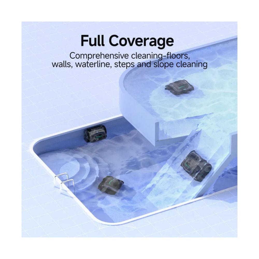 Καθάρισε την πισίνα σου σε κάθε σημείο με το WYBOT C1. Με τεχνολογία Freesuction 3.0, τριπλό μοτέρ και έξτρα πλευστά μέρη, φροντίζει δάπεδο, τοίχους, γραμμή νερού και σκαλοπάτια. Επιλέγεις ανάμεσα σε 5 τρόπους καθαρισμού και 2 μοτίβα διαδρομής μέσω εφαρμογής WYBOT. Με έξυπνο σύστημα στάθμευσης και χρονοπρογραμματισμό έως 4 φορές/εβδομάδα, η συντήρηση γίνεται εύκολη.