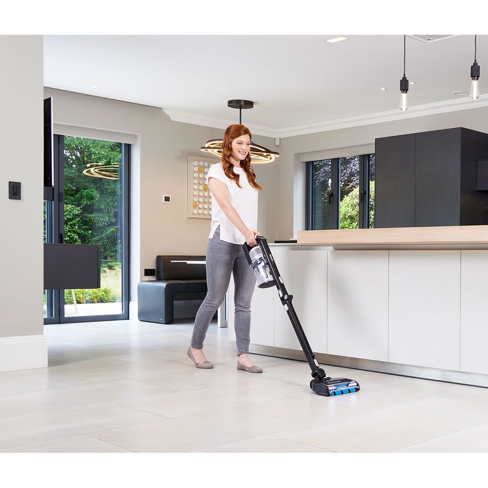 Σκούπα Shark IZ320EU με οθόνη LED και έως 120 λεπτά αυτονομία καθαρίζει όλους τους τύπους δαπέδου με 50% μεγαλύτερη αναρρόφηση χάρη στην τεχνολογία Powerfins όπου οι ειδικοί κύλινδροι βούρτσας φτάνουν ακόμα και στις πιο δύσκολες γωνίες. Τέλος, η τεχνολογία Anti Hair Wrap εξασφαλίζει ότι καμία τρίχα δεν κολλάει στη κεφαλή της βούρτσας.