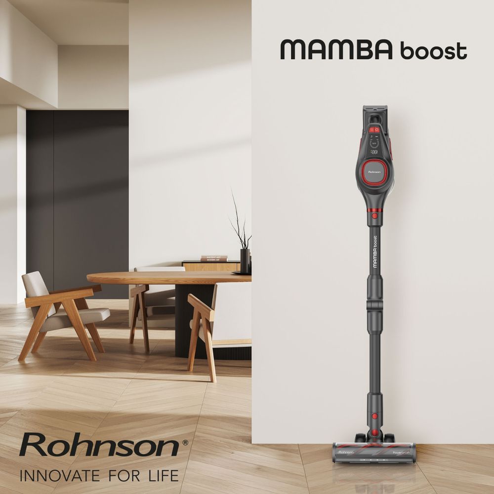 Η ασύρματη φορητή σκούπα Mamba Boost M20 της Rohnson είναι σχεδιασμένη για να σου προσφέρει ισχυρή και άνετη καθαριότητα χωρίς καλώδια. Με ψηφιακό μοτέρ 465W, διάρκεια λειτουργίας έως 60 λεπτά και απορροφητική ισχύ έως 190AW, καθαρίζει αποτελεσματικά κάθε επιφάνεια. Διαθέτει αισθητήρα σκόνης, κυκλωνική τεχνολογία χωρίς σακούλα, αναδιπλούμενο σωλήνα και πλήρες σετ εξαρτημάτων για κάθε γωνιά του σπιτιού.