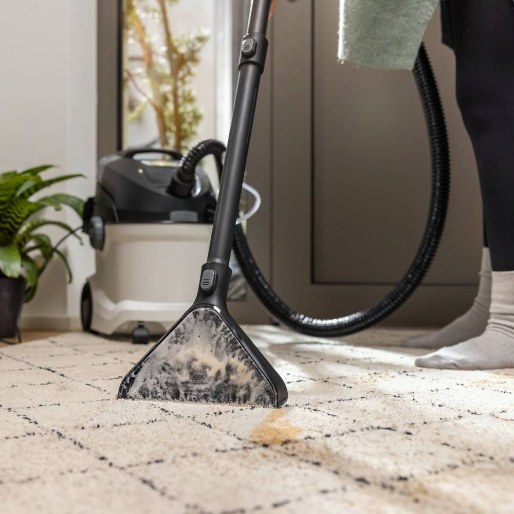 Βαθύ καθάρισμα υφασμάτων με spray‑extraction, 2 δεξαμενές & λειτουργία wet & dry για μέγιστη υγιεινή.