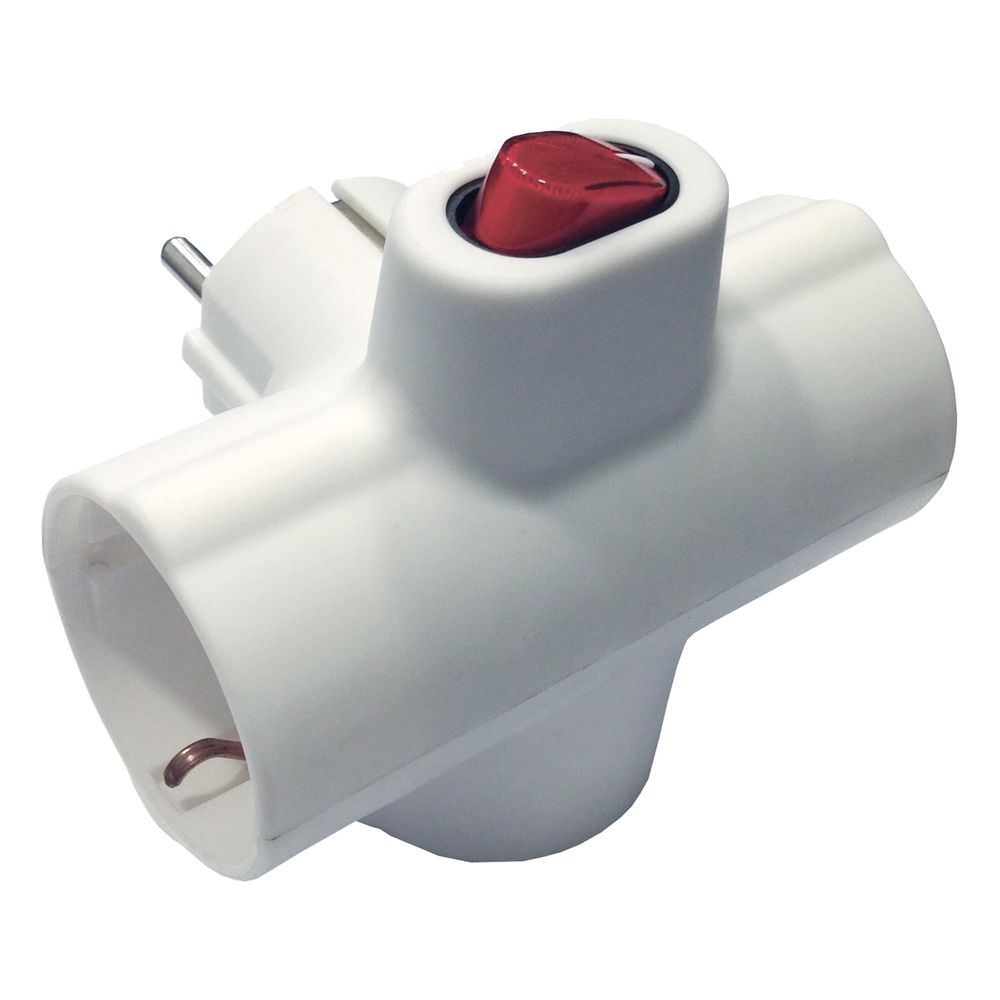 Αντάπτορας σταυρός σούκο τριών θέσεων με διακόπτη οριζόντιος λευκός και προστασία επαφών.