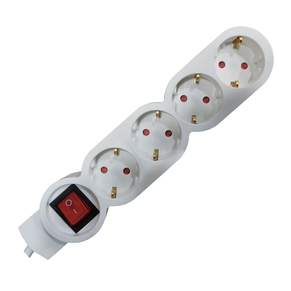 Eurolamp Σούκο 4 θέσεων, λευκό, οβάλ, με καλώδιο 1.5m και με διακόπτη Πολύπριζο Ασφαλείας