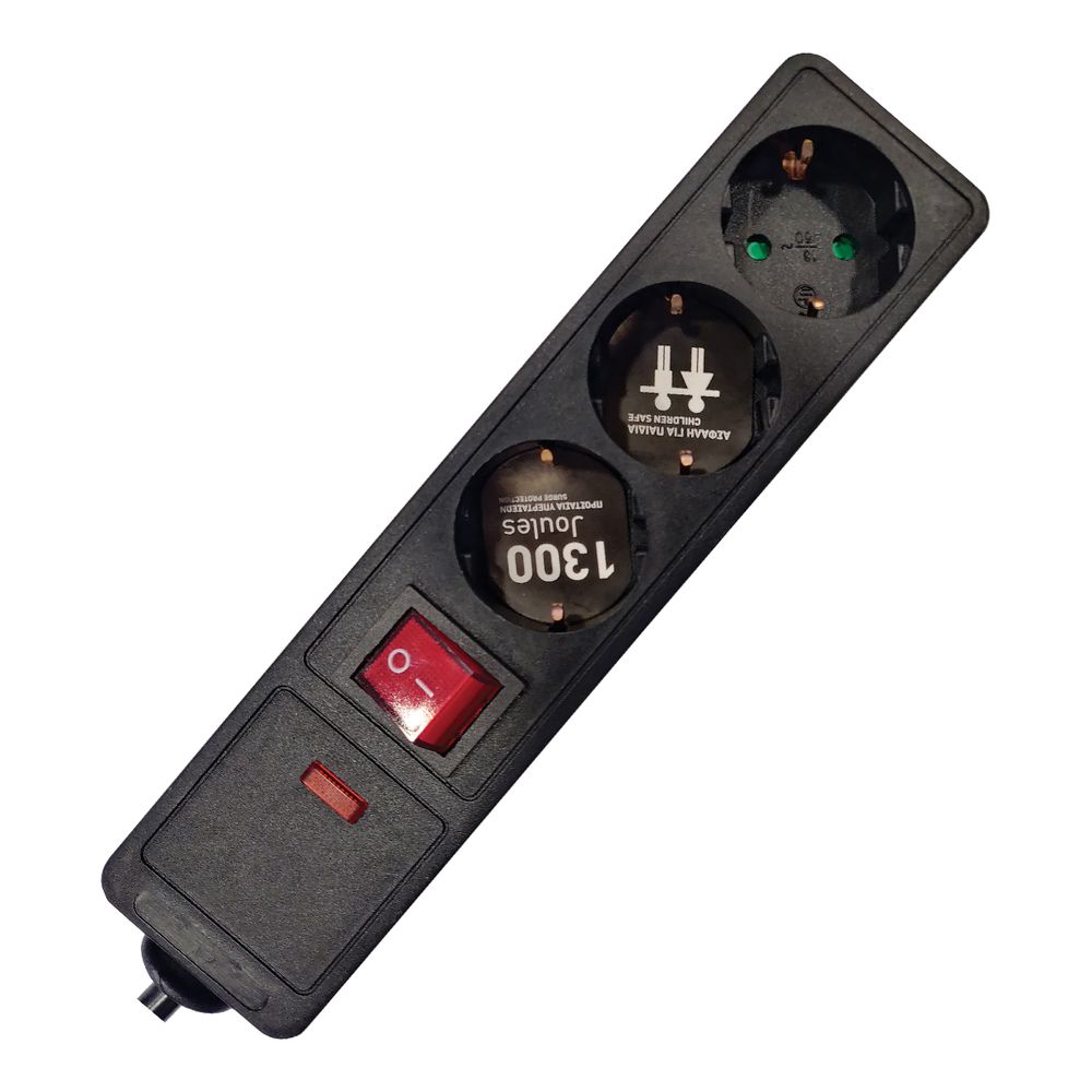 Πολύπριζο ασφαλείας τριών θέσεων με διακόπτη, με μήκος καλωδίου 1.5m και προστασία επαφών.