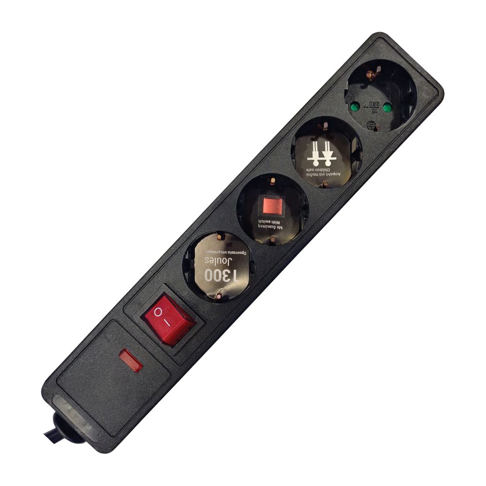 Πολύπριζο ασφαλείας τεσσάρων θέσεων με διακόπτη, με μήκος καλωδίου 1.5m και προστασία επαφών.