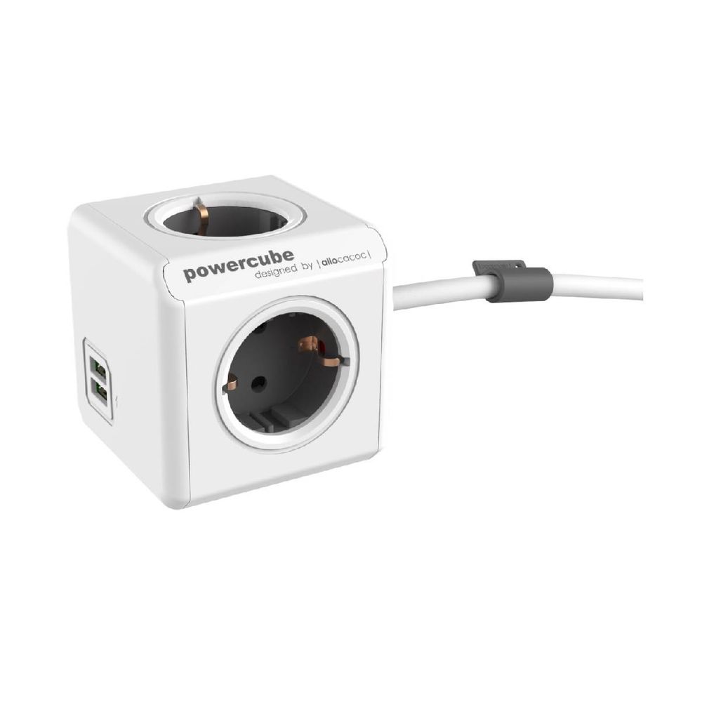Powercube Extended 4 Θέσεων & 2 USB Γκρι Πολύπριζο
