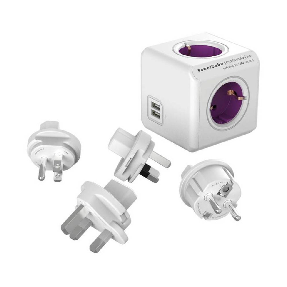 Powercube 4 Θέσεων & 4x Plugs + USB Μωβ