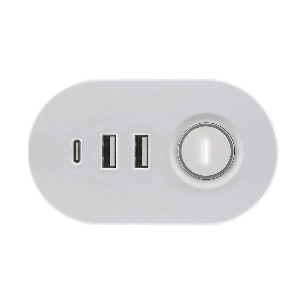Θύρες Φόρτισης: 2 x USB-A και 1 x USB-C στο επάνω μέρος, διακόπτης On/Off για εξοικονόμηση ενέργειας, διαμόρφωση Πριζών: Οι πρίζες είναι πλάγια κατά 45° για ευκολία στη χρήση.
