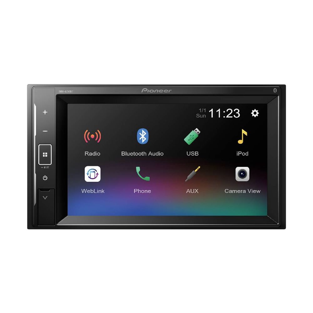 To ηχοσύστημα Pioneer DMH-A241BT 2DIN διαθέτει οθόνη multimedia 2-Din, λειτουργία Bluetooth, θύρα USB, εξωτερικό μικρόφωνο για hands free κλήσεις, τηλεχειριστήριο υπέρυθρων για ασύρματο έλεγχο και 3 εξόδους προενίσχυσης. Είναι συμβατο με συσκευές iPhone ή Android χρησιμοποιώντας ένα μόνο καλώδιο USB, μέσω του οποίου ελέγχεις το smartphone από το ταμπλό του αυτοκινήτου σου. Ακόμη διαθέτει Bluetooth που επιτρέπει streaming μουσικής και hands-free κλήσεων μέσω ασύρματης σύνδεσης.