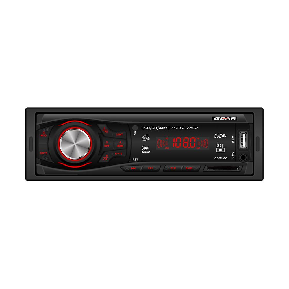 Ράδιο USB / Bluetooth αυτοκινήτου Gear GR 100P, ιδανικό για αναπαραγωγή αρχείων MP3, με ενισχυτή 4 x 45 Watt, θύρα USB, αυτόματη απομνημόνευση σταθμών, βοηθητική είσοδο Aux In και κόκκινο φωτισμό.