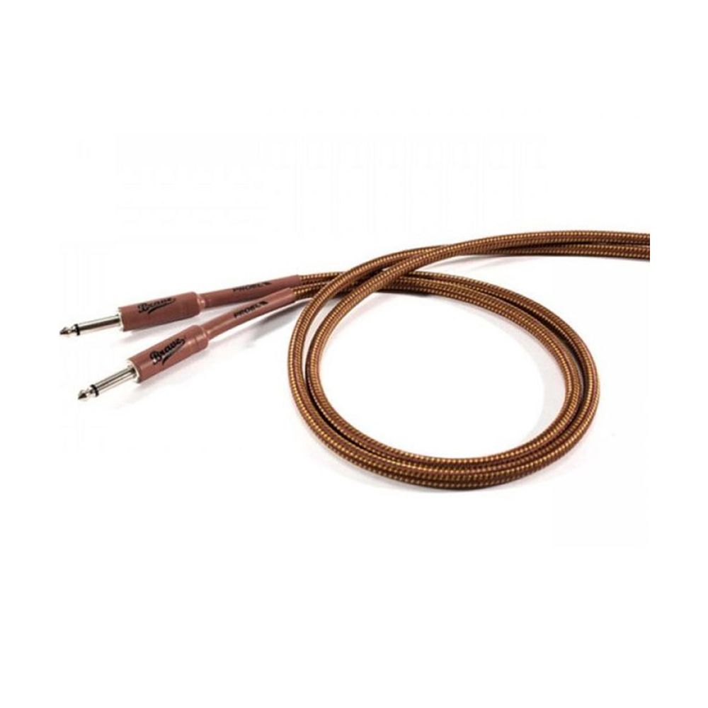 Καλώδιο υφασμάτινο καφέ με κίτρινο, από ένα ίσιο καρφί 6.3mm mono αρσενικό σε ένα ίσιο καρφί 6.3mm mono αρσενικό 3m.