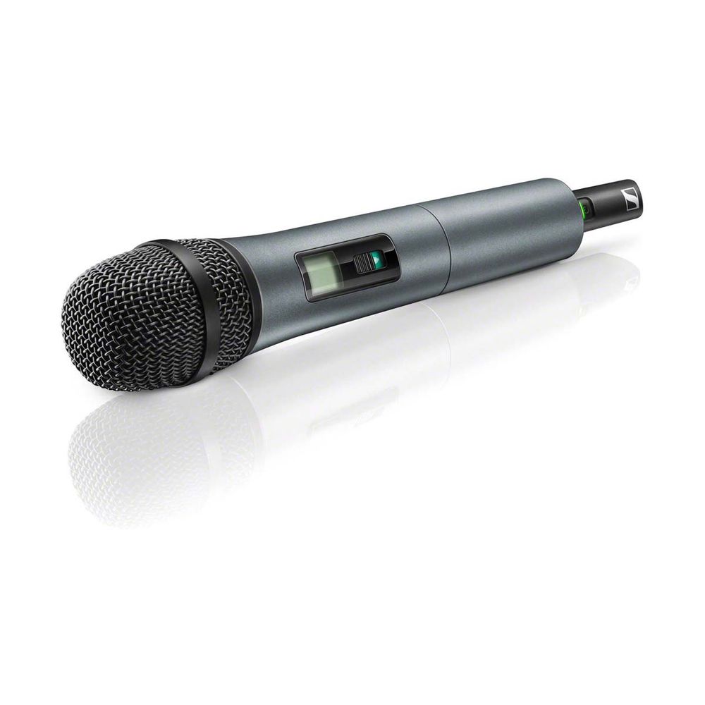 Πομπός χειρός Sennheiser, 614-638 MHz, με την καρδιοειδή δυναμική κάψα E-825, εύρος ζώνης 24 MHz, 10 προσυντονισμένες συχνότητες, ευκολία επιλογής νέων συχνοτήτων από τον χρήστη, οθόνη LCD και ένδειξη στάθμης μπαταρίας. Συμβατός με τις σειρές XSW-1 και XSW-2.