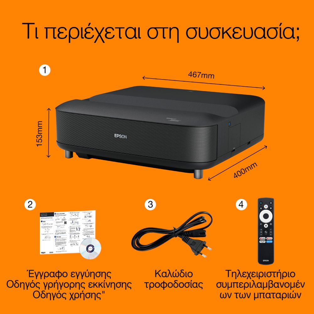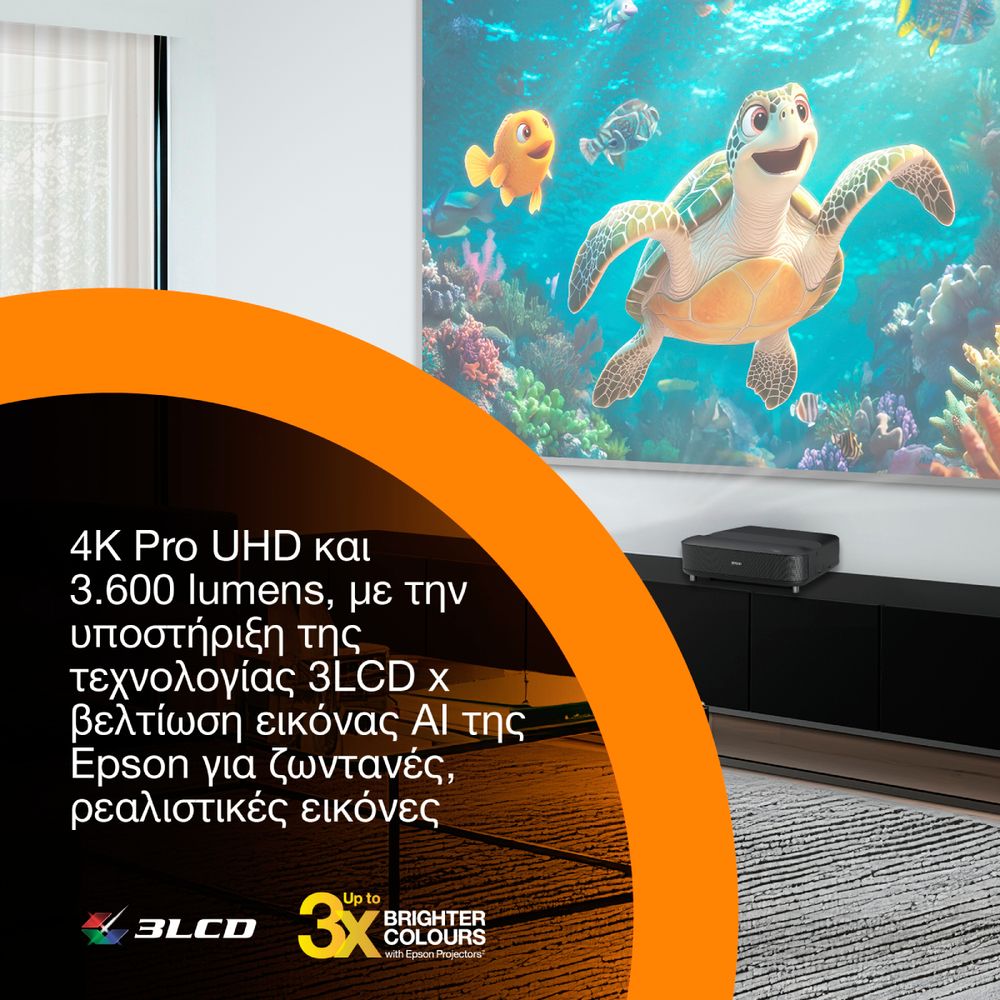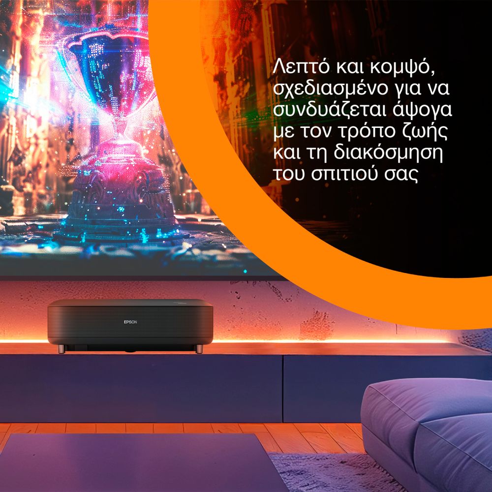 Το σύστημα προβολής Epson LS670B σου επιτρέπει να δημιουργήσεις τη δική σου κινηματογραφική εμπειρία στο σπίτι εύκολα και εντυπωσιακά. Από οικογενειακές βραδιές ταινιών μέχρι μεγάλους αγώνες και ζωντανές συναυλίες, απολαμβάνεις καθηλωτική εικόνα υψηλής ποιότητας που μεταμορφώνει κάθε χώρο. Ρυθμίζεται απλά, για να ζεις κάθε στιγμή σαν να βρίσκεσαι στον κινηματογράφο.