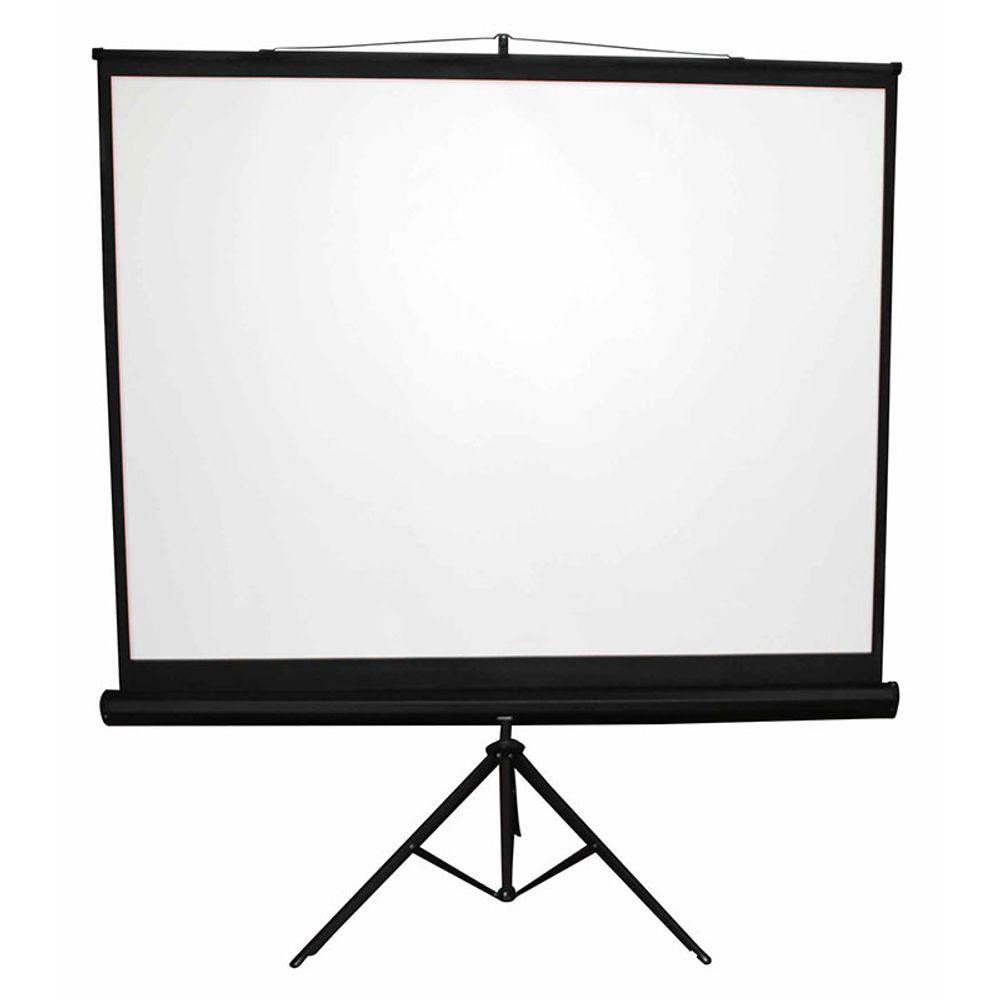 Μεταφερόμενη οθόνη προβολής με τρίποδο. Gain 1.0, λευκό πανί σε μαύρο πλαίσιο. Το πίσω μέρος της οθόνης είναι μαύρο, ώστε να συγκρατεί το φως και να μην χάνεται φωτεινότητα από την προβολή.