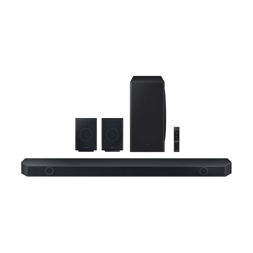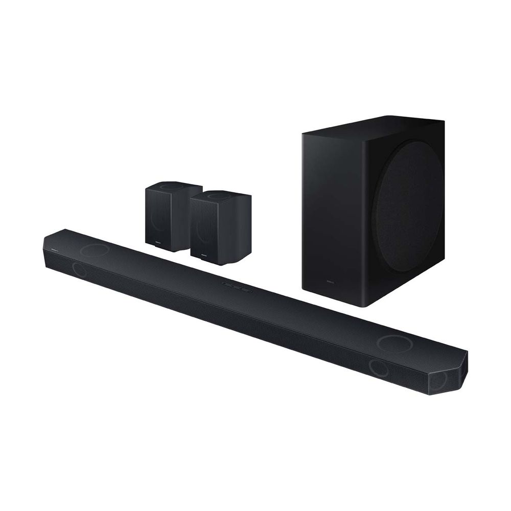 Απόλαυσε πολυκαναλικό ήχο αιχμής 9.1.4. Αυτή η έξυπνη soundbar διαθέτει δυναμικά ηχεία, ασύρματο ήχο surround Dolby Atmos και κρυστάλλινο ήχο Q-Symphony που συγχρονίζεται με τα ηχεία της συμβατής Samsung τηλεόρασής σου για να ενισχύσει το αγαπημένο σου περιεχόμενο. Περιλαμβάνει σετ ασύρματων πίσω ηχείων.