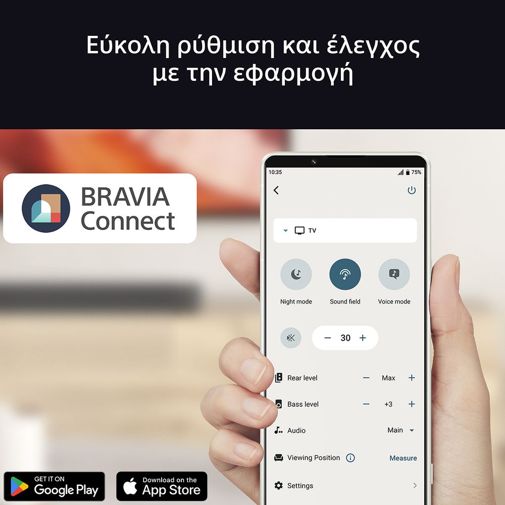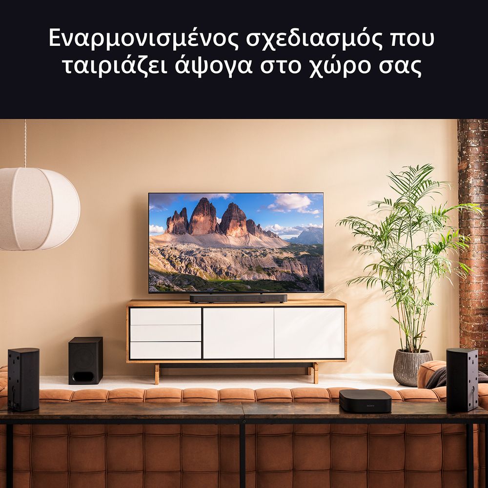 Το Sony BRAVIA Theatre System 6 προσφέρει 1000W ισχύος και καθηλωτικό 5.1ch surround για πραγματική κινηματογραφική εμπειρία. Με Dolby Atmos και DTS:X, απολαμβάνεις τρισδιάστατο ήχο που σε περιβάλλει. Ο κομψός σχεδιασμός ταιριάζει άψογα στον χώρο σου, ενώ η τεχνολογία Hi-Res εξασφαλίζει πλούσιο και καθαρό ήχο. Με BRAVIA Connect, έχεις εύκολη ρύθμιση και έλεγχο, ενώ το AI Voice Zoom 3 (μέσω BRAVIA TV) βελτιώνει τους διαλόγους για κορυφαία εμπειρία θέασης.