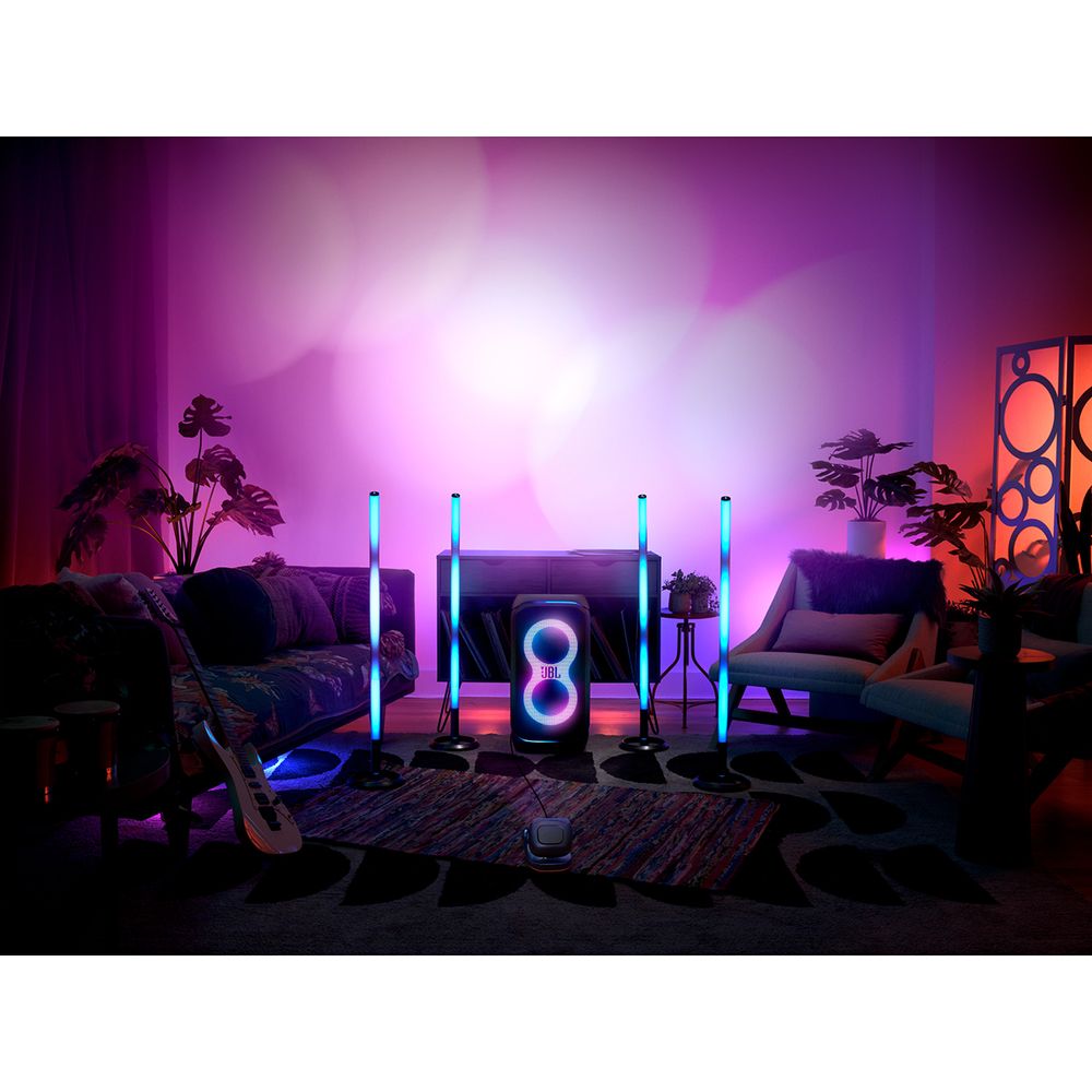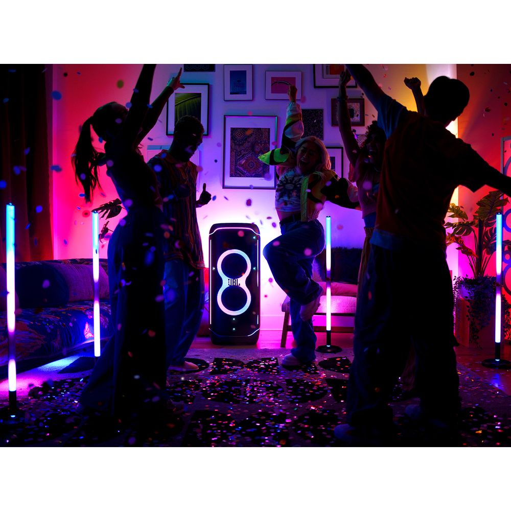 Partylight stick JBL με πολύχρωμο φως LED 360 μοιρών, που συγχρονίζεται άμεσα με οποιοδήποτε ηχείο JBL PartyBox για να αναβαθμίσει τον εσωτερικό ή τον εξωτερικό χώρο σου. Με IPX4 αδιάβροχο φως, ρυθμίζεται σε λιγότερο από ένα λεπτό.