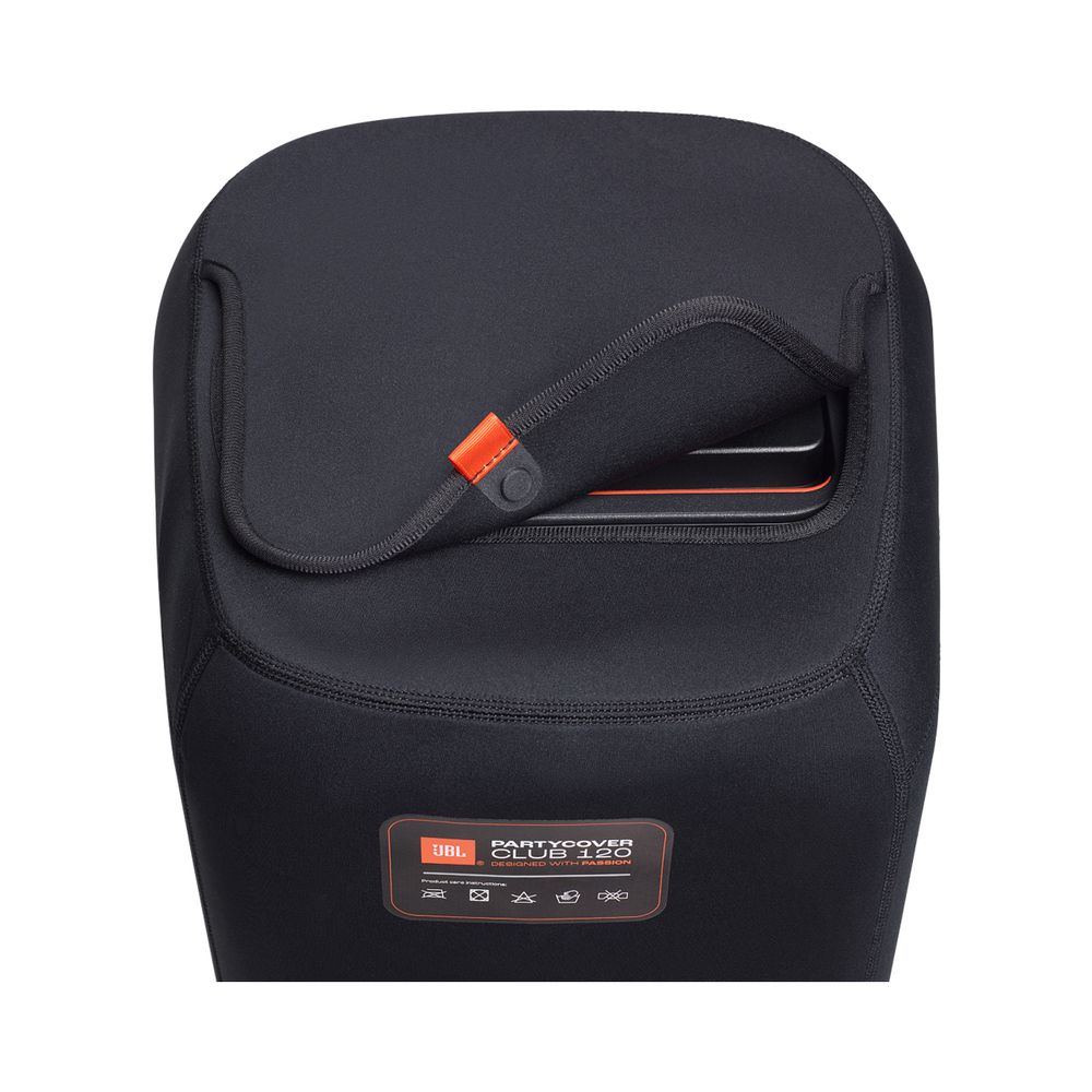 Όταν δεν χρησιμοποιείς το JBL PartyBox Club 120 για να ανεβάσεις την διάθεση, κράτησε το ασφαλές με το JBL PartyCover Club 120. Κατασκευασμένο από το ίδιο υλικό με μία στολή κατάδυσης, αυτό το κομψό, ανθεκτικό στη σκόνη και τις γρατσουνιές κάλυμμα είναι ελαφρύ και ευέλικτο, αλλά αρκετά ισχυρό για να προστατεύει το PartyBox Club 120 σου από ζημιές κατά τη μεταφορά. Προστάτεψε την επένδυσή σου στον ήχο με το JBL PartyCover Club 120.