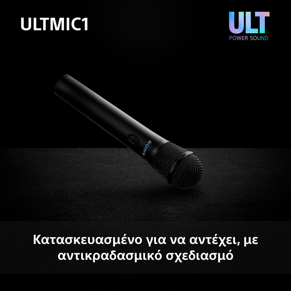 2 μικρόφωνα και δέκτης, Duet Assist, Μπαταρία 20 ωρών, Φόρτιση 10' δίνει 2 ώρες, Αντικραδασμική προστασία, Κατάλληλο για την σειρά ULT POWER SOUND ULT FIELD 7, ULT TOWER 9 / 9AC, ULT TOWER 10 και τα ηχεία Sony Party (XV900, XV800, XV500, XP700, XP500), Περιλαμβάνεται καλώδιο USB (A-C), Plug and Play, Διαστάσεις (ΠxΥxΒ) : 51 x 233 x 51 mm