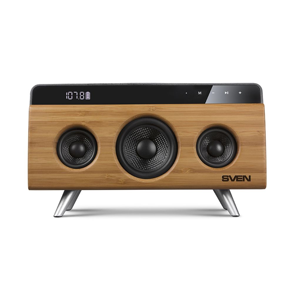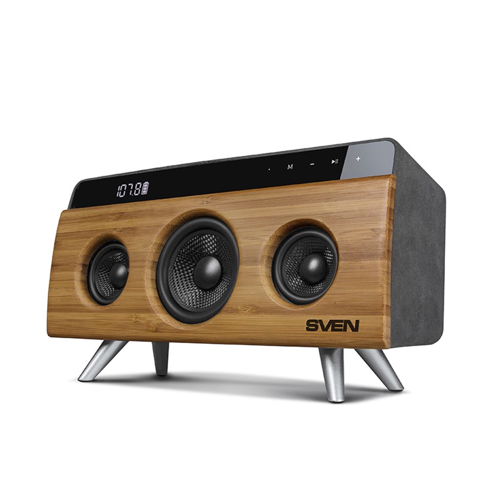 Φορητό ηχείο bluetooth Sven HA-930, με μπάσο για βαθύ και καθαρό ήχο, ενσωματωμένη επαναφορτιζόμενη μπαταρία, LED οθόνη, λειτουργία ραδιοφώνου FM, είσοδος AUX και USB stick. Ο vintage σχεδιασμός του με φινίρισμα bamboo και απαλό οικολογικό δέρμα, ταιριάζει σε όλους τους χώρους του σπιτιού σου.