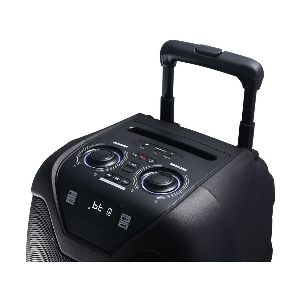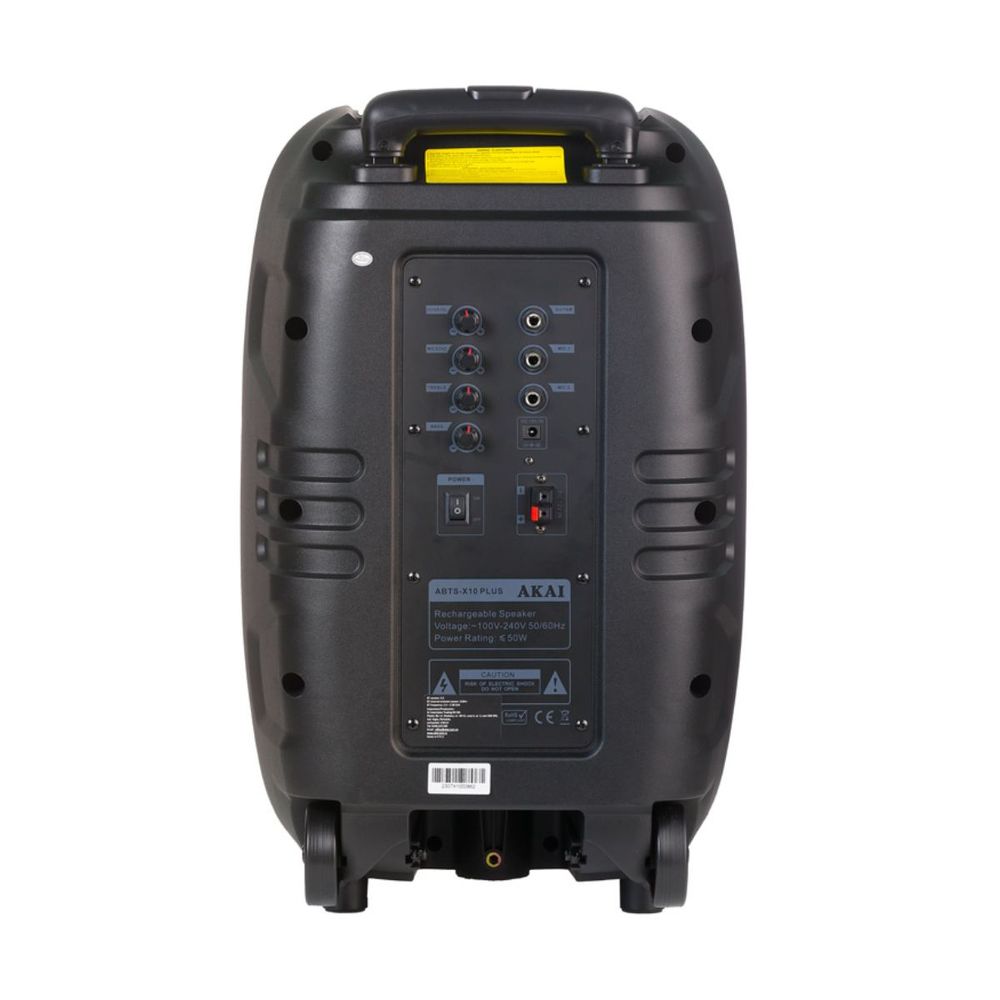 Το φορητό ηχείο Akai ABTS-X10 Plus συνδυάζει δύναμη και ευκολία μεταφοράς με τροχήλατο σχεδιασμό. Με μπαταρία 4500 mAh προσφέρει 3-5 ώρες μουσικής, ενώ περιλαμβάνει ασύρματο μικρόφωνο και τηλεχειριστήριο. Συνδέεται μέσω Aux-in ή με θύρες USB για μουσική και φόρτιση. Υποστηρίζει 2 μικρόφωνα και κιθάρα, προσφέροντας εξαιρετική ποιότητα ήχου από 20Hz έως 20KHz.