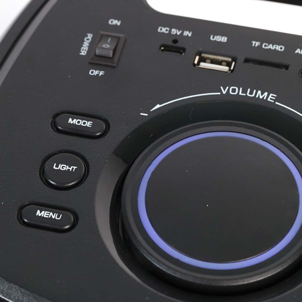 Bluetooth version 5.0, TWS, Αλλαγή χρώματος LED, USB/Υποδοχή TF Card/ FM Ραδιόφωνο, Αux-In 3.5 mm, BASS/Treble/Mic volume/Echo control