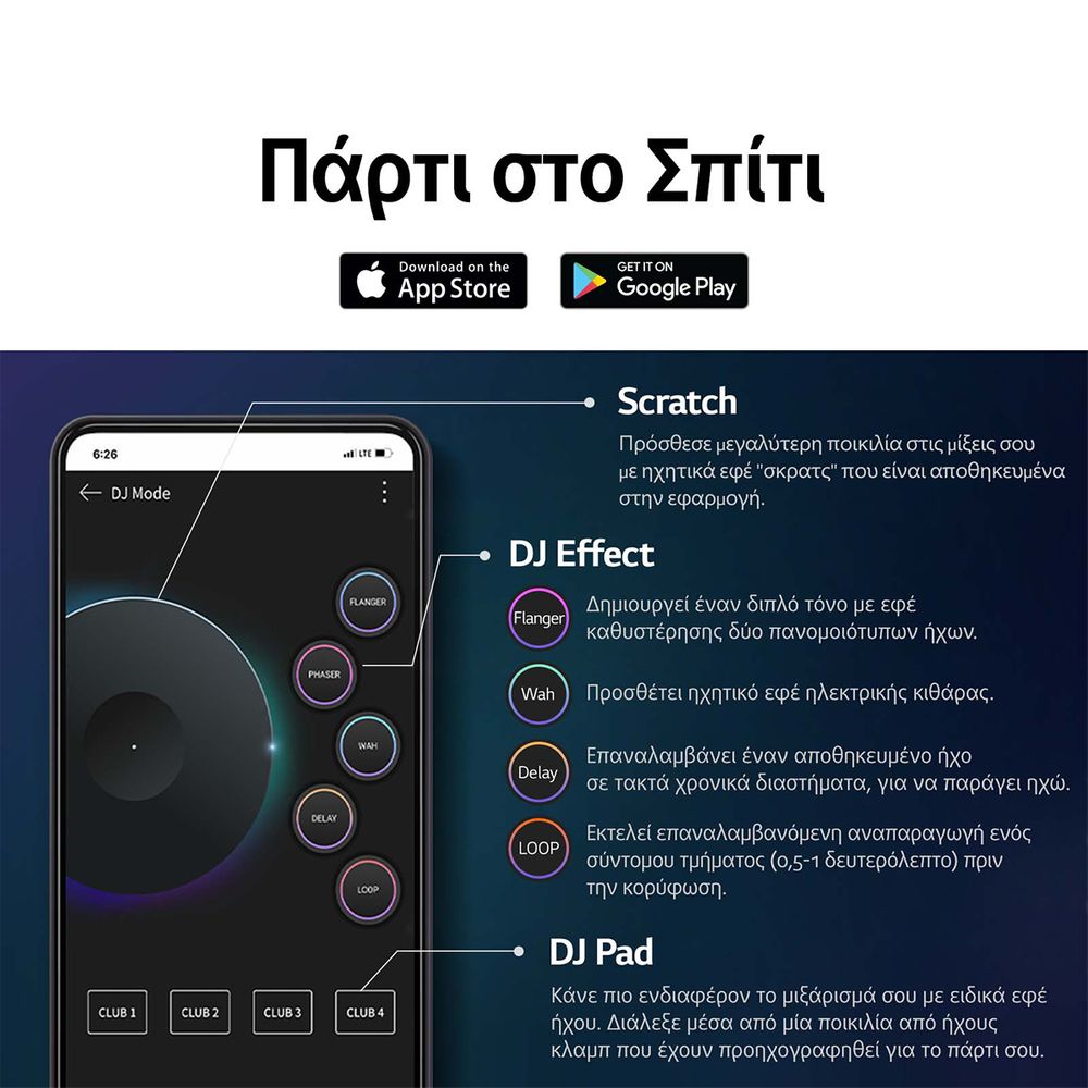Φέρε μία μουσική πανδαισία στο σπίτι σου με τα ασύρματα Bluetooth ηχεία XBOOM360 RP4B. Με ξεχωριστό στυλ υψηλής αισθητικής που ταιριάζει και εναρμονίζεται με κάθε εσωτερικό χώρο, θα γίνουν αναπόσπαστο κομμάτι του σπιτιού σου. Απόλαυσε απαράμιλλη ποιότητα ήχου όπου και αν βρίσκεσαι στο χώρο, χάρη στην τεχνολογία πανκατευθυντικού ήχου της LG. Επιπλέον, κατέβασε την εφαρμογή XBOOM και προσάρμοσε τον φωτισμό ανάλογα με την διάθεση σου.