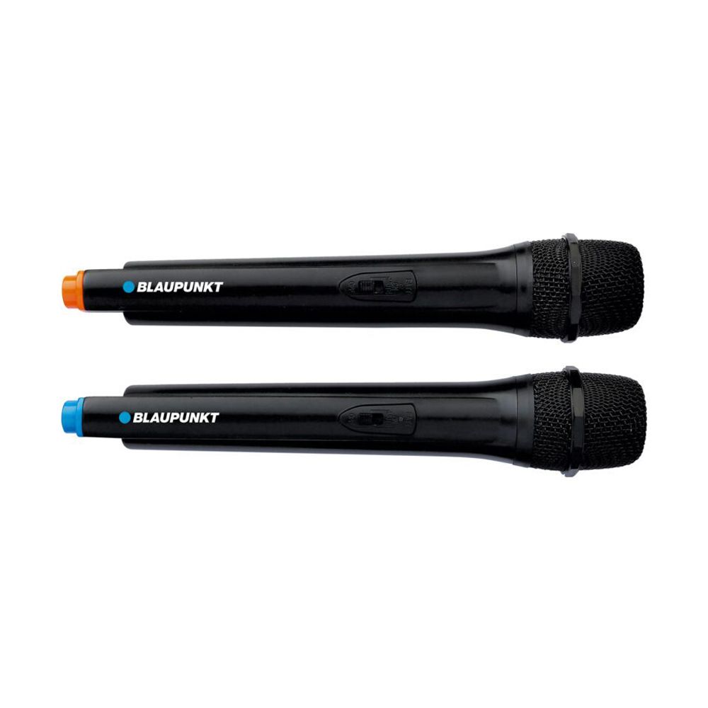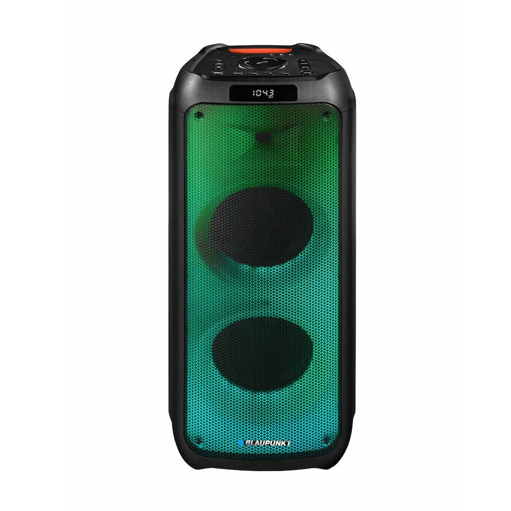 Ηχείο Bluetooth Blaupunkt με ισχύ 1000W, 5 προγραμματιζόμενες λειτουργίες ήχου, δέκτη FM, λειτουργία TWS και δύο μικρόφωνα που συνδέονται αυτόματα με το μεγάφωνο για να χρησιμοποιείς την λειτουργία karaoke.