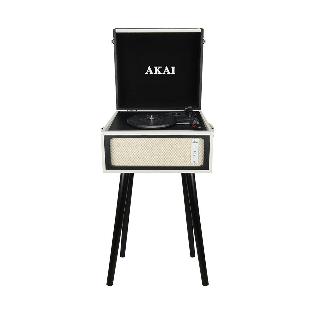 Πικάπ βαλίτσα Akai ATT-100 BT με πόδια με Bluetooth in/out, εγγραφή και αναπαραγωγή από USB/κάρτα SD, Aux-In και ενσωματωμένα ηχεία 16 W για να ακούς μουσική με καθαρό ήχο.