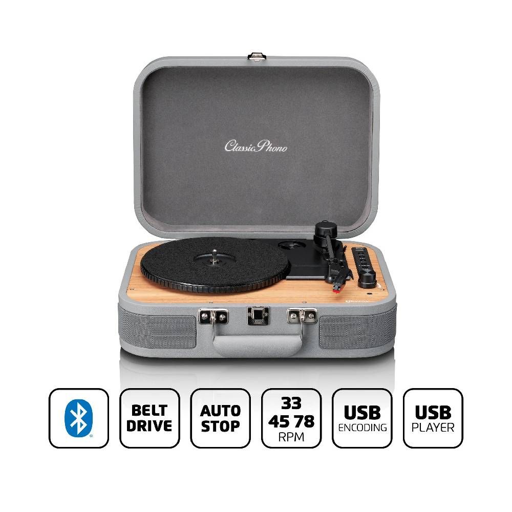 Απόλαυσε την αγαπημένη σου μουσική με το κομψό ρετρό πικάπ βαλιτσάκι με Bluetooth και ηχεία. Αυτό το εύχρηστο ρετρό πικάπ-βαλίτσα δεν παίζει μόνο τους δίσκους βινυλίου σου. Δίνει τη δυνατότητα να μεταδώσεις τα αγαπημένα σου τραγούδια σε stream στα ενσωματωμένα ηχεία, χρησιμοποιώντας το τηλέφωνο ή το tablet σου. Επιπλέον, είναι δυνατή η εγγραφή της μουσικής που παίζεις απευθείας σε USB.