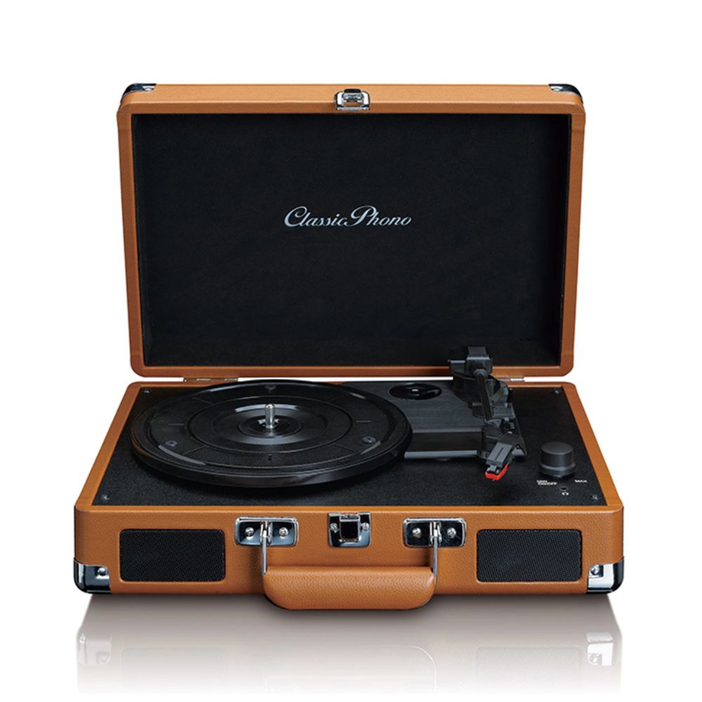 Το Lenco Classic Phono TT-10 είναι ένα κομψό και ρετρό πικάπ που προστατεύεται από μια πρακτική καφέ θήκη, ζυγίζοντας λιγότερο από 3 κιλά, καθιστώντας το ιδανικό για ταξίδια . Μπορείς να το έχεις πάντα μαζί σου και να απολαμβάνεις τη μουσική σου όπου κι αν βρίσκεσαι. Διαθέτει ενσωματωμένα ηχεία και μπορεί να παίξει δίσκους σε τρεις ταχύτητες: 33, 45 και 78 στροφές ανά λεπτό.