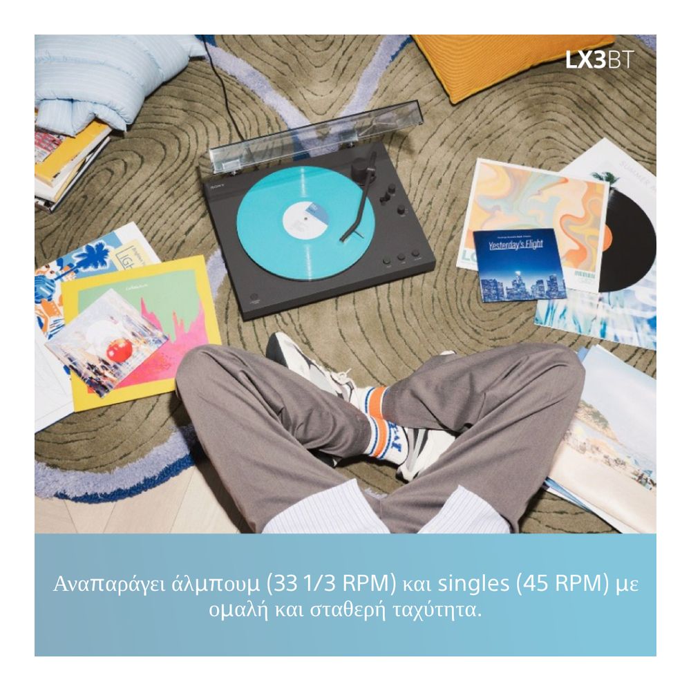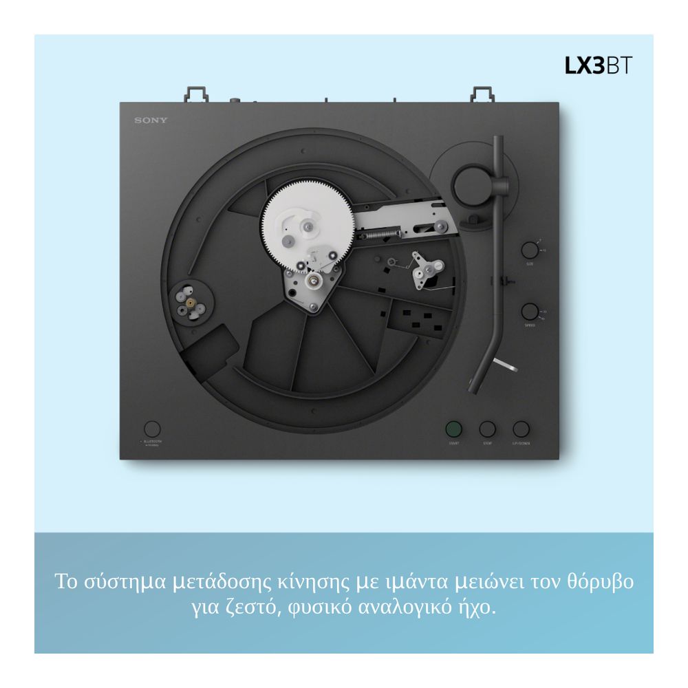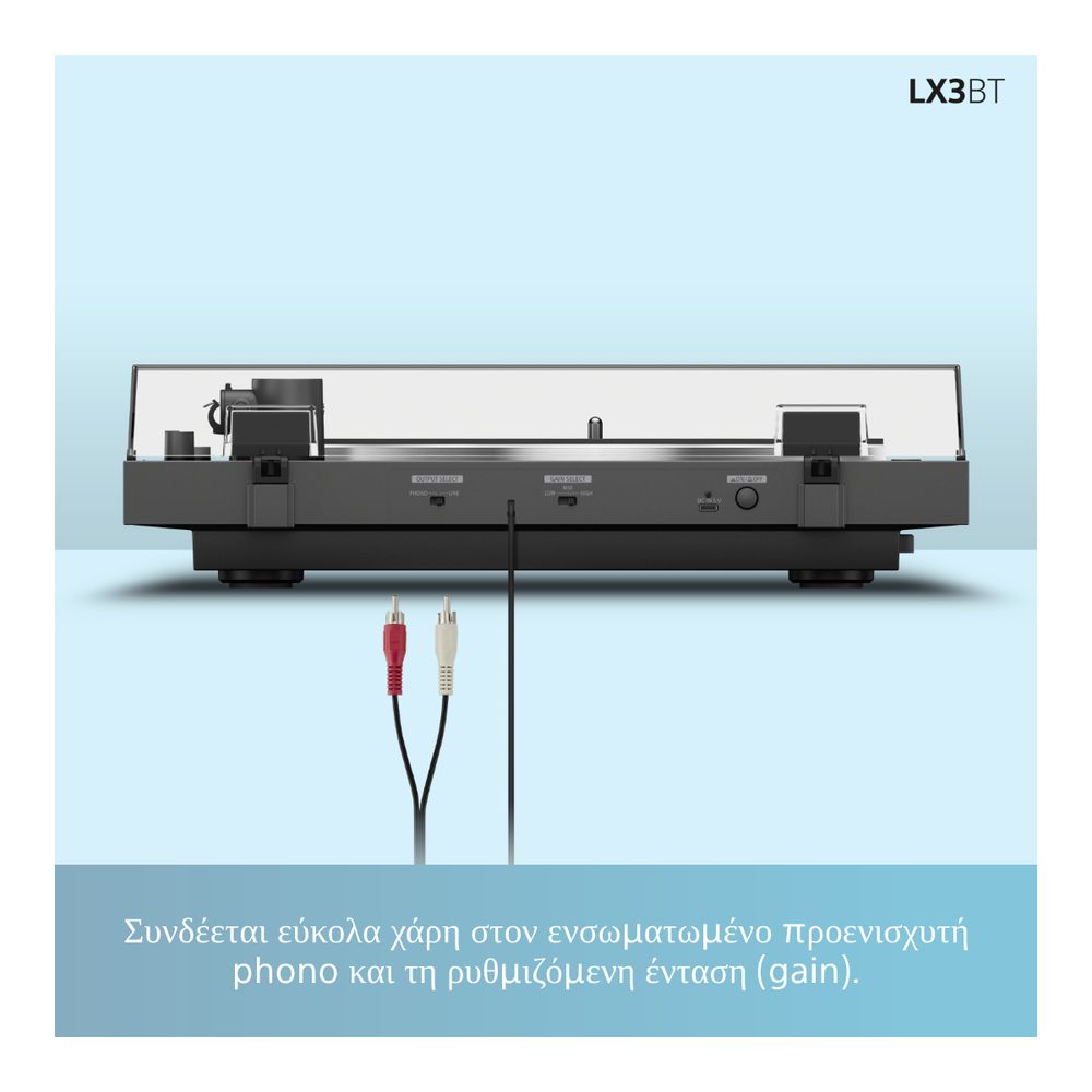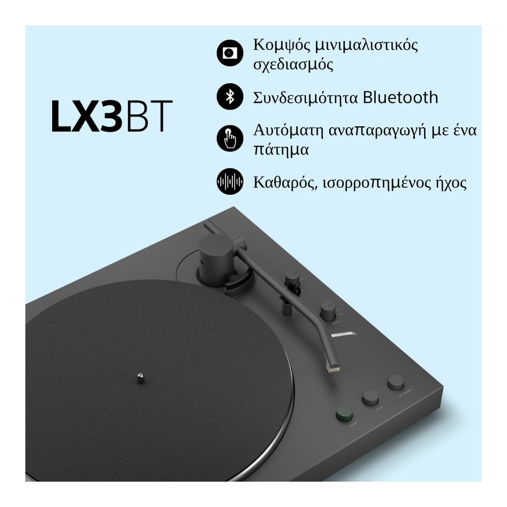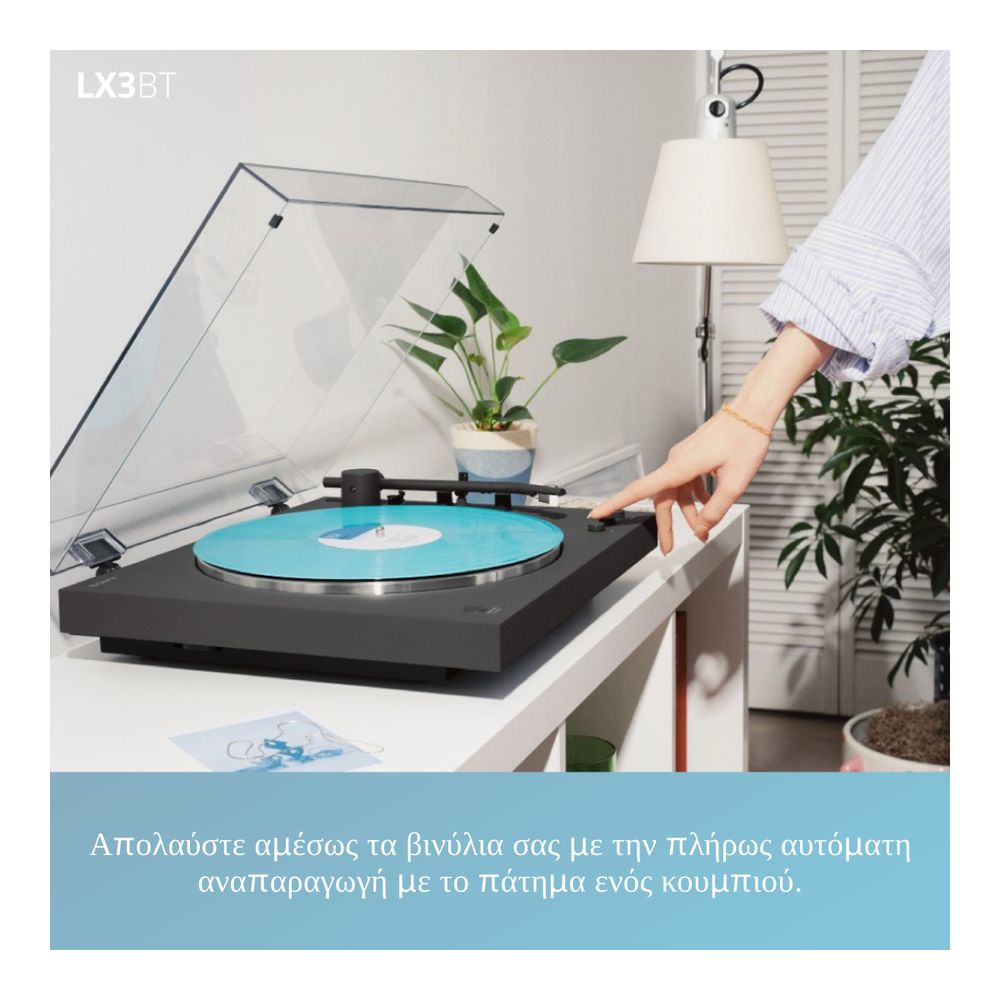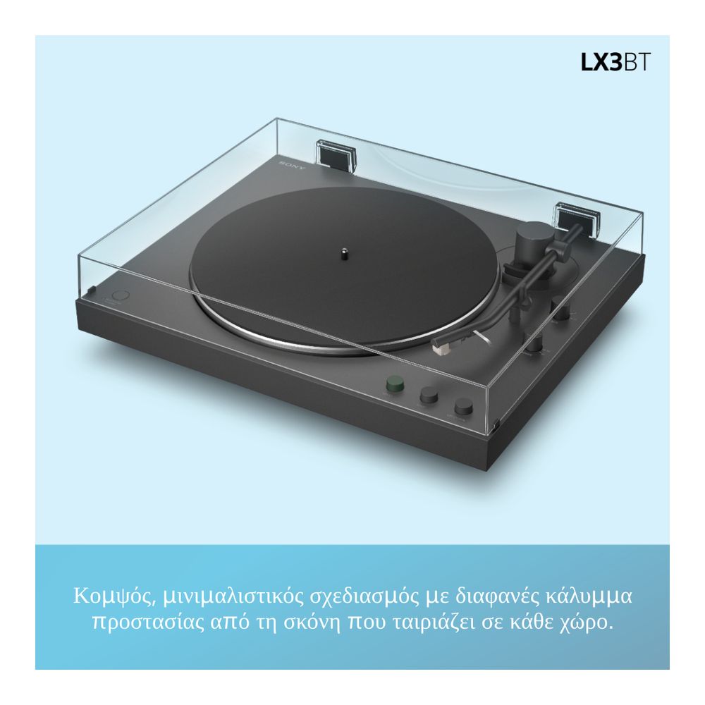 Ξεκίνα το ταξίδι σου στον κόσμο του βινυλίου με το pick up Sony PS-LX3BT, απλό, ασύρματο και συναρπαστικό. Από χαλαρά πρωινά έως βραδινές στιγμές, ενσωματώνεται άψογα στη μέρα σου. Η πλήρως αυτόματη αναπαραγωγή με ένα κουμπί, η σύνδεση Bluetooth® και το κομψό κάλυμμα για προστασία από τη σκόνη συνδυάζονται σε ένα εκλεπτυσμένο σχέδιο που αναβαθμίζει τόσο τη μουσική όσο και τον χώρο σου.
