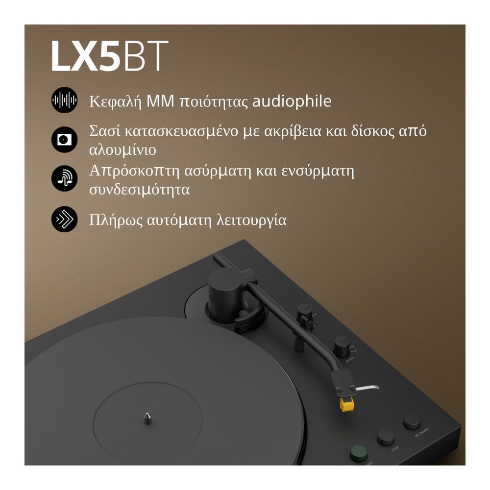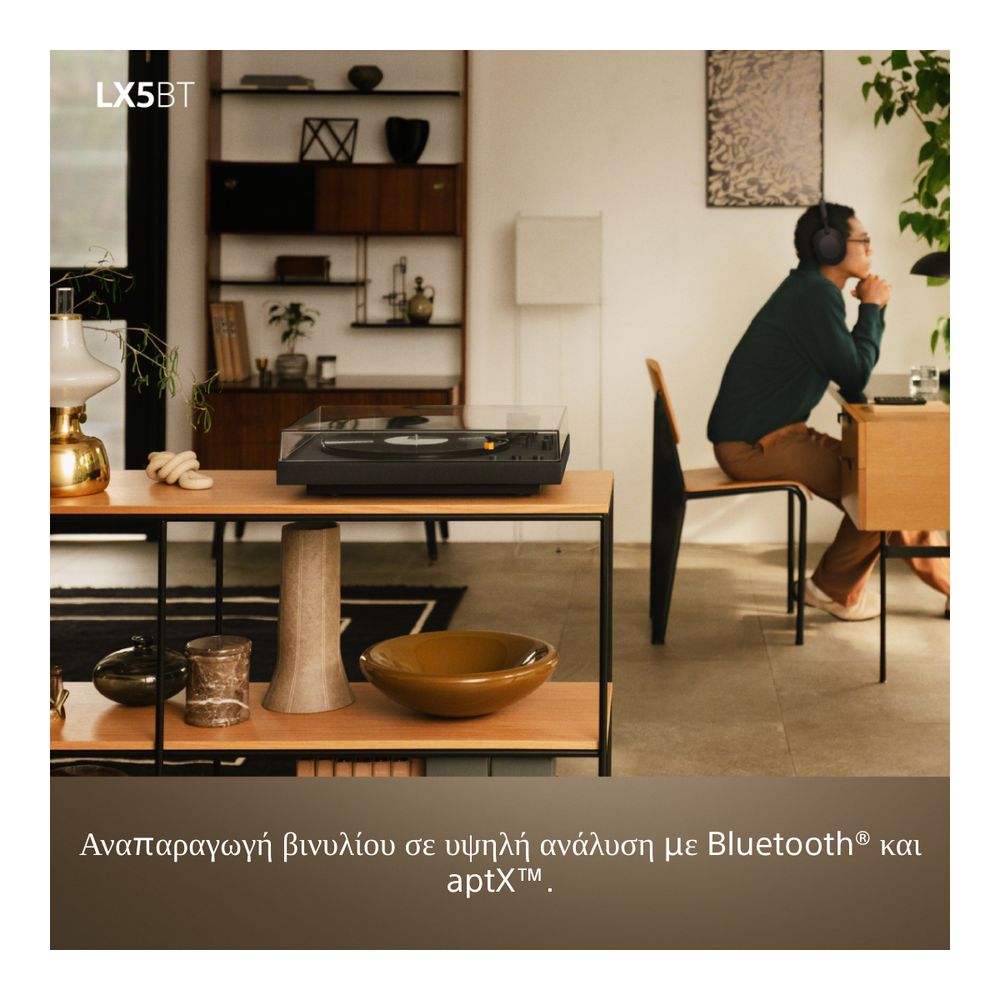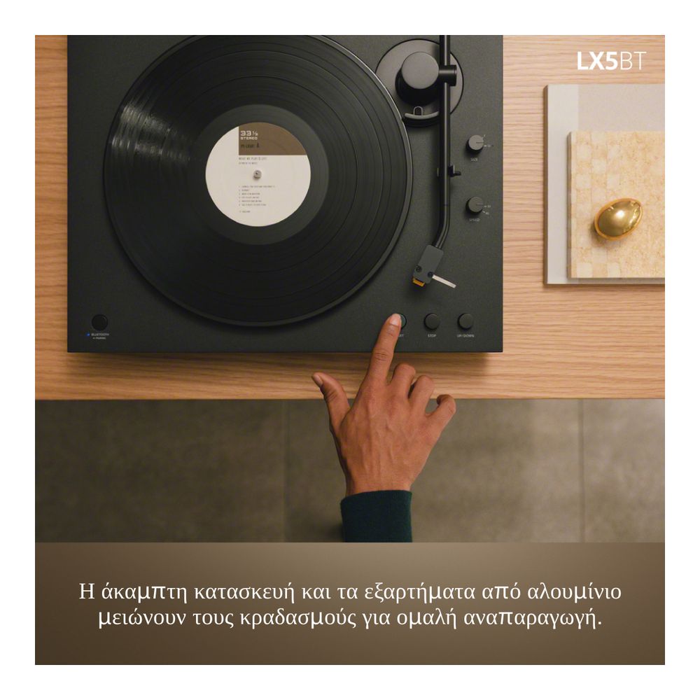 Αναβάθμισε την εμπειρία βινυλίου σου με το Pick Up Sony PS-LX5BT. Από τη στιγμή που η βελόνα αγγίζει τον δίσκο έως την τελευταία νότα, απολαμβάνεις πλούσιο ήχο υψηλής ανάλυσης. Η πλήρως αυτόματη αναπαραγωγή με ένα κουμπί, η ασύρματη σύνδεση Bluetooth® και τα προσεκτικά σχεδιασμένα μηχανικά μέρη συνδυάζονται σε ένα κομψό και εκλεπτυσμένο σχέδιο που αναδεικνύει τόσο τον ήχο όσο και το στιλ σου.