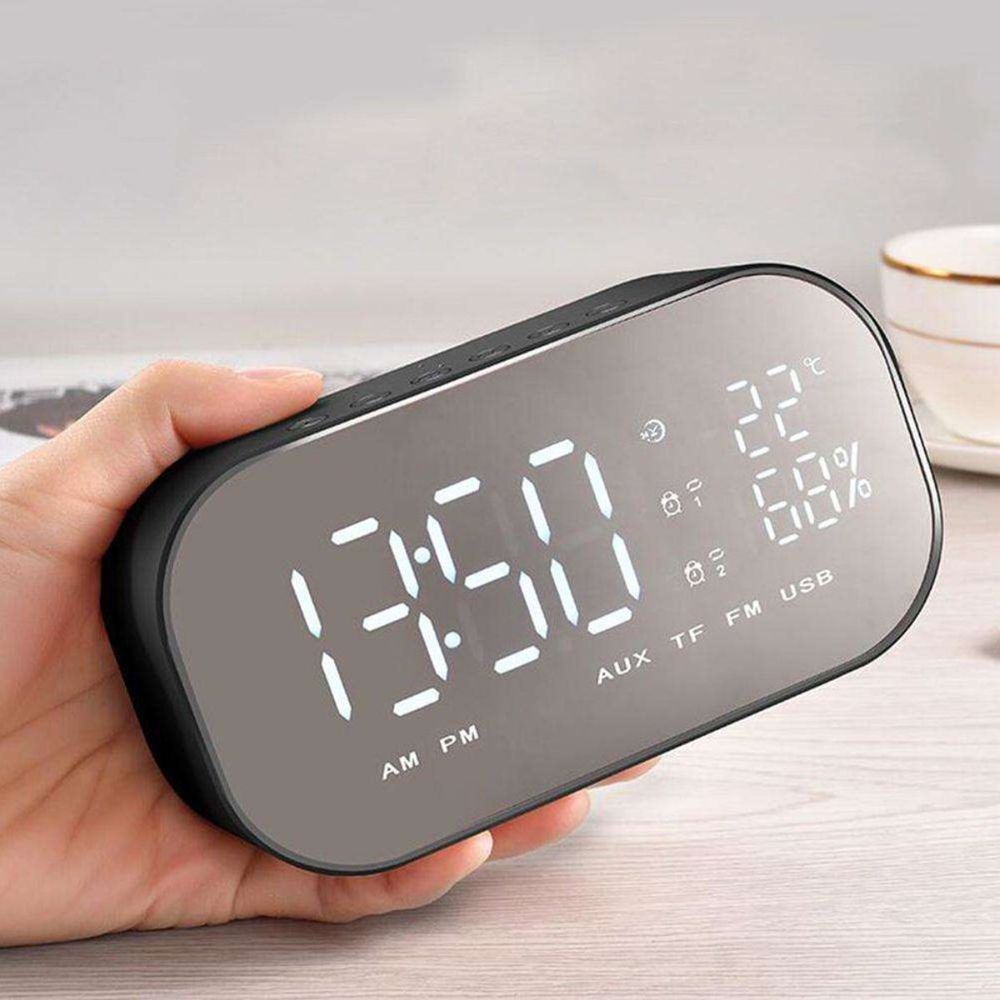 Ψηφιακό ξυπνητήρι και ηχείο Bluetooth σε μια συσκευή. Είναι φορητό, με μπαταρία Li-ion 1800mAh που προσφέρει μέχρι και 8 ώρες αυτονομία και ισχύ 6W. Διαθέτει επίσης Aux-In, οθόνη LED με επίστρωση καθρέπτη, διπλή ώρα αφύπνισης, υποδοχή για κάρτα SD και θύρα USB για φόρτιση συσκευών και αναπαραγωγή μουσικής. Η φωτεινότητα της οθόνης μπορεί να ρυθμιστεί σε 3 επίπεδα για να μην σε ενοχλεί στο σκοτάδι. Η ένδειξη της ώρας είναι μεγάλη και ευανάγνωστη. Επίσης δείχνει τη θερμοκρασία.