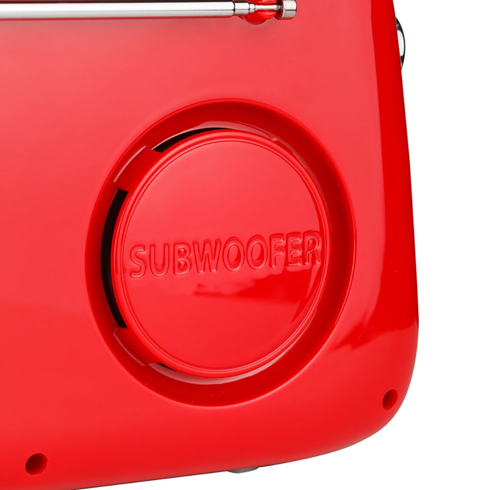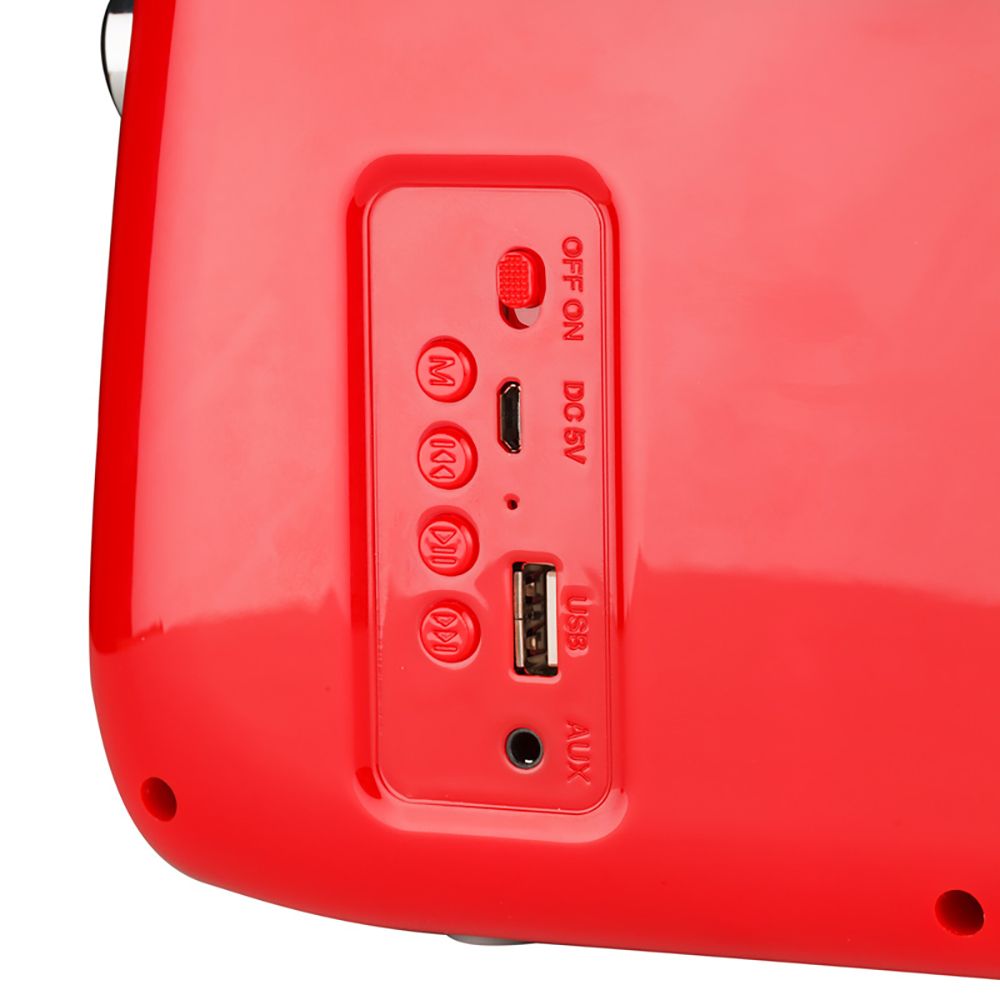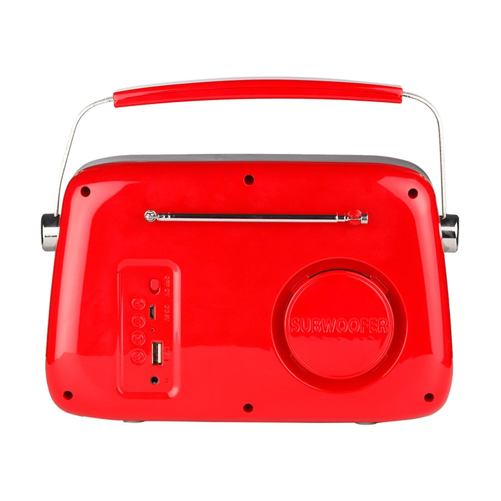 Ρετρό αναλογικό ραδιόφωνο Έκδοση Bluetooth V5.3 Βασικές Λειτουργίες: Bluetooth, AUX 3.5mm, USB, FM Θύρα φόρτισης: Micro USB Εύρος εκπομπής: 10m Συχνότητα: 2.4GHz PMPO: 24W + Subwoofer Χρόνος λειτουργίας: 7 ώρες (ένταση 50%) Τάση: 5V Τύπος μπαταρίας: Mπαταρία λιθίου 3.7 V 1500mAh Λόγος σήματος προς θόρυβο: ≥65dB Χερούλι μεταφοράς Τηλεσκοπική κεραία Ισχύς: 24W Βάρος: 0.71Κg Διαστάσεις: 23.2 x 8.7 x 19.1 εκ. Χρώμα: Kόκκινο