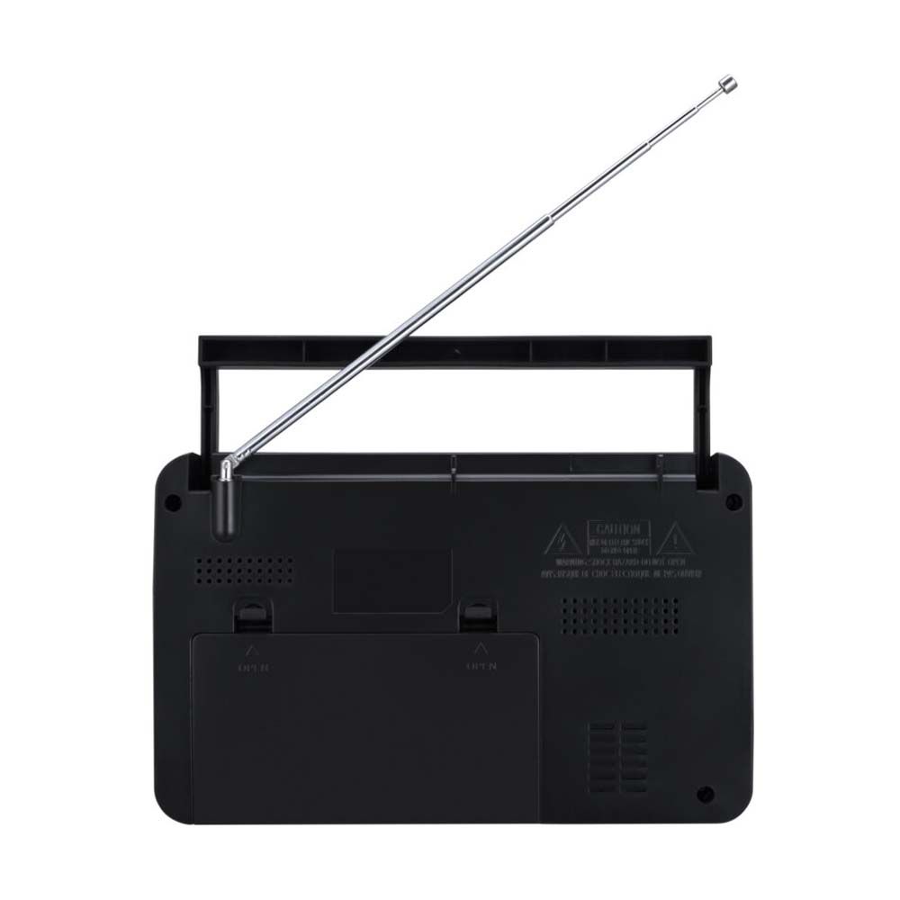 Ραδιόφωνο παγκοσμίου λήψης Λήψη FM 87.5 – 108 MHz Λήψη AM 522 – 1620 KHz Λήψη 3.700 – 22.050 MHz Ισχύς ηχείου 1 W RMS Μέγεθος ηχείου 3,5″ Απόκριση 160Hz – 4.0kHz Aux-In Έξοδος ακουστικών 3.5 mm Ξυπνητήρι με λειτουργία snooze 25 μνήμες σταθμών ανά μπάντα (FM / AM / SW) Οι μνήμες αποθηκεύονται με αυτόματη αναζήτηση ή χειροκίνητα 3 μνήμες σταθμών ανά μπάντα που επιλέγονται με ένα κουμπί (FM / AM / SW) Κλείδωμα πλήκτρων Λειτουργία sleep για αυτόματη απενεργοποίηση Οθόνη LED με φωτισμό Λειτουργεί με ρεύμα ή 4 μπαταρίες τύπου D Αυτονομία με μπαταρίες έως και 300 ώρες σε ένταση 50% Διαστάσεις προϊόντος: 23.65 x 6.35 x 14.75 εκ.