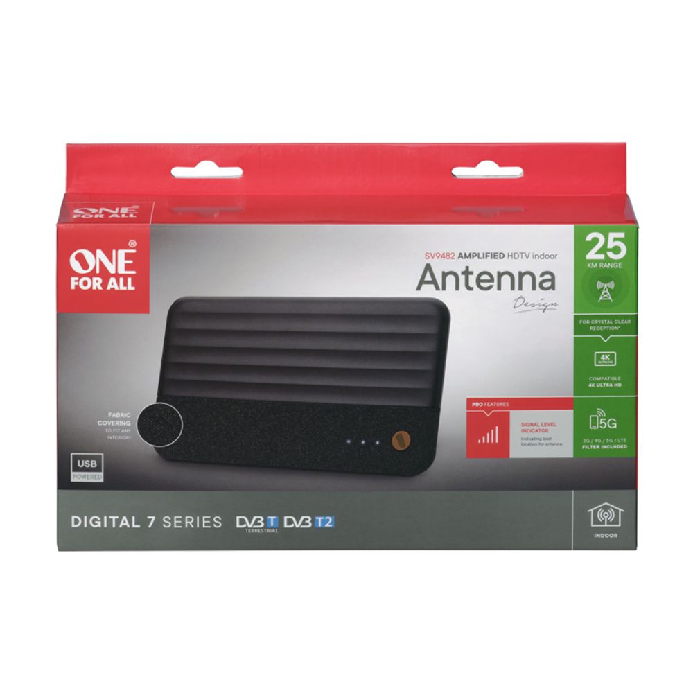 Ψηφιακή εσωτερική κεραία One for All SV9482 5G black fabrics με μοναδικό σχεδιασμό, αυτόματο εντοπισμό σήματος, δυνατότητα επιτοίχιας τοποθέτησης και με βελτιωμένα φίλτρα για κρυστάλλινη λήψη.