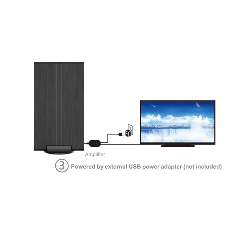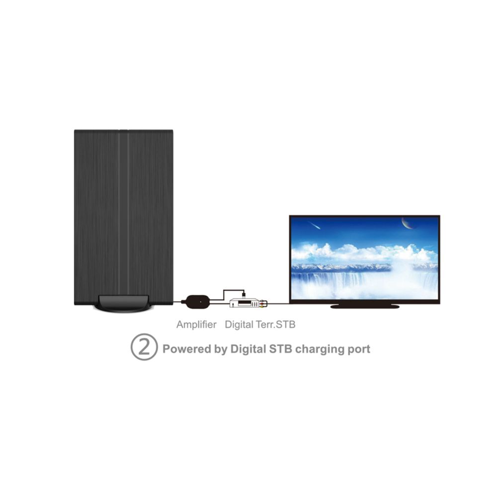 Ανακάλυψε την κεραία τηλεόρασης με ενισχυτή 28 dB, ιδανική για εσωτερικούς και εξωτερικούς χώρους. Τοποθέτησέ την εύκολα στον τοίχο ή το παράθυρο για βελτιωμένη λήψη. Λαμβάνει σήματα UHF/VHF/FM και συνδέεται εύκολα, κυρίως σε εξωτερικό χώρο. Τροφοδοτείται μέσω USB, ώστε να τη συνδέεις απευθείας με τον αποκωδικοποιητή σου, την τηλεόρασή σου ή έναν απλό φορτιστή USB.