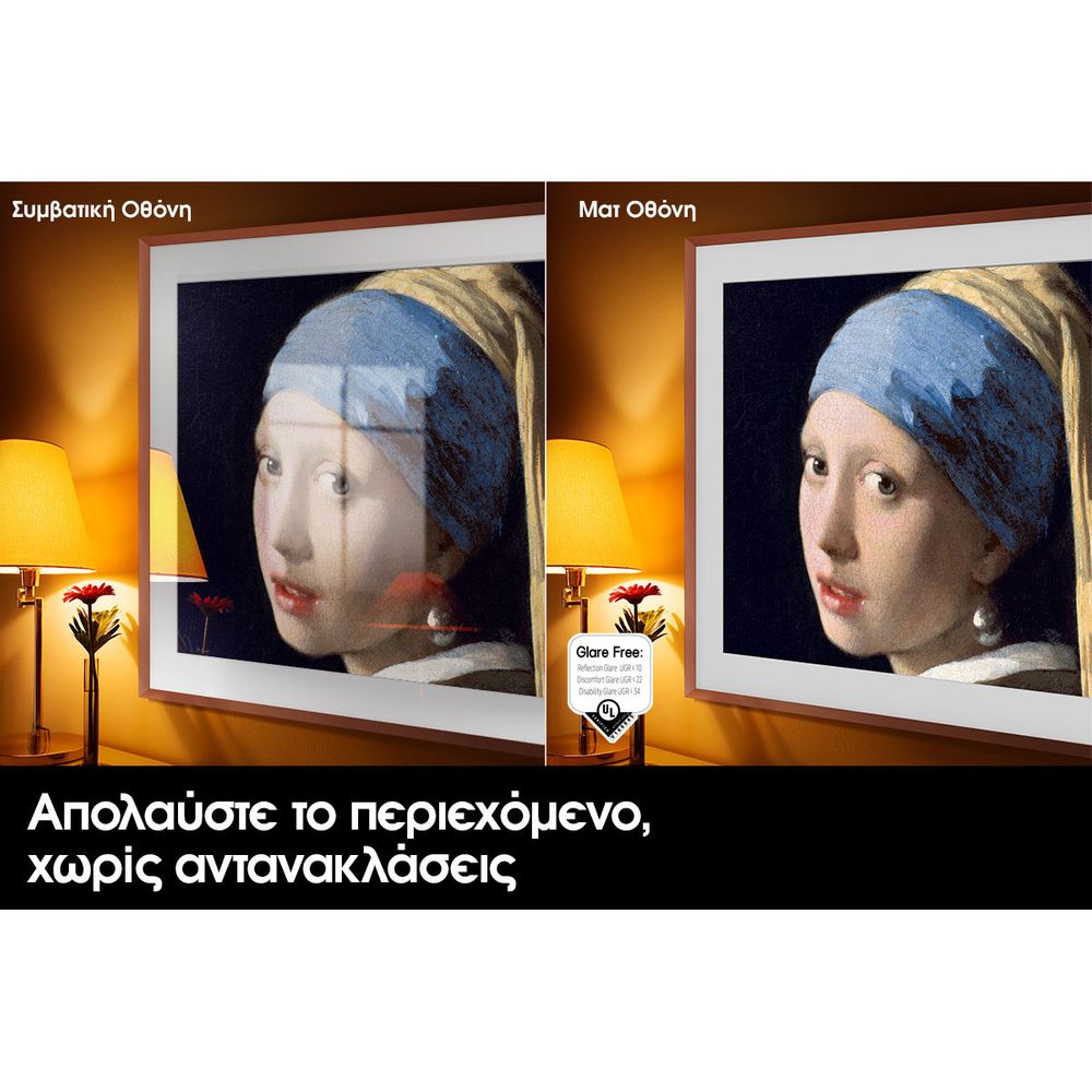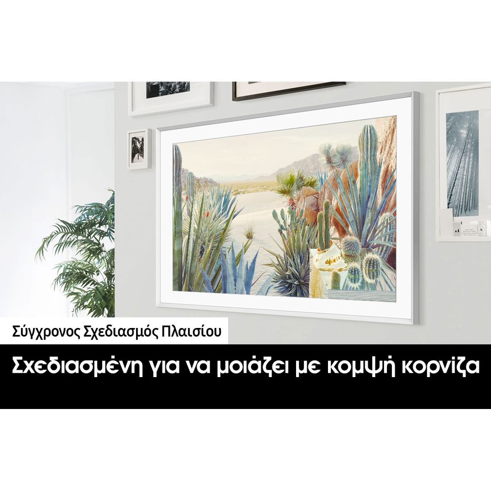 Η τηλεόραση The Frame της Samsung συνδυάζει σύγχρονο σχεδιασμό πλαισίου για να μοιάζει με κομψή κορνίζα, ματ οθόνη για να απολαμβάνεις περιεχόμενο, χωρίς αντανακλάσεις, προσαρμόσιμο πλαίσιο για να επιλέγεις το πλαίσιο που ταιριάζει στο στυλ σου και λειτουργία Art Mode για προβολή έργων τέχνης.