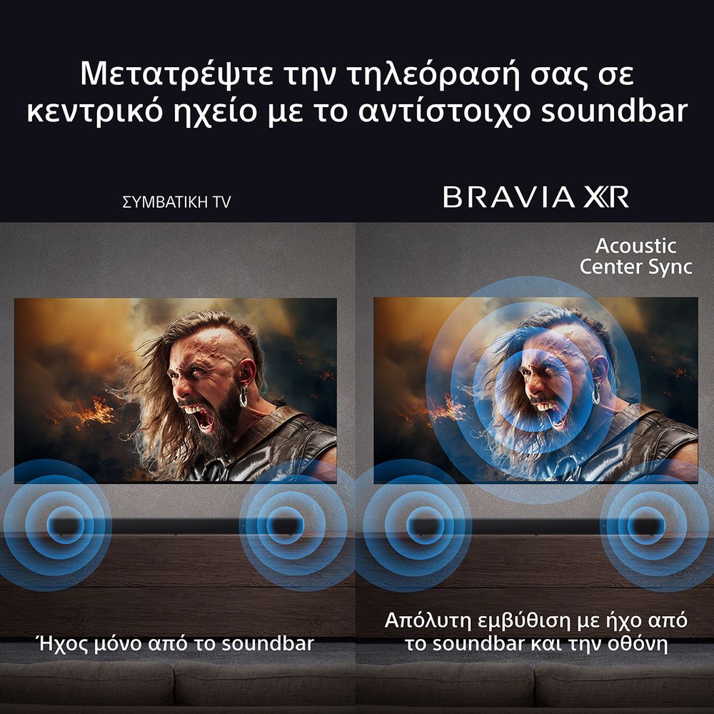 Πλάτος βάσης : 122.3 εκ. , Δωρεάν ταινίες για 24 μήνες με την ενσωματωμένη εφαρμογή Sony Pictures Core , Εγγραφή ψηφιακών καναλιών PVR με προαιρετικό usb stick , Σύνδεση ακουστικού ασύρματα με Bluetooth και ταυτόχρονη έξοδος ήχου από τα ηχεία τηλεόρασης , Αισθητήρας φωτός/χρώματος , η οθόνη είναι ηχείο Acoustic Surface Audio+, υπογούφερ x2 και ενεργοποιητές x2, Google Play Store , Android TV 12, φωνητική αναζήτηση ,Υβριδική τηλεόραση HbbTV , 2 τηλεχειριστήρια, ενσωματωμένο μικρόφωνο στην τηλεόραση με διακόπτη, επεκτάσιμος αποθηκευτικός χώρος , Ρολόι στην οθόνη , Wi-Fi 6 , Teletext , Χώρα προέλευσης: Σλοβακία .