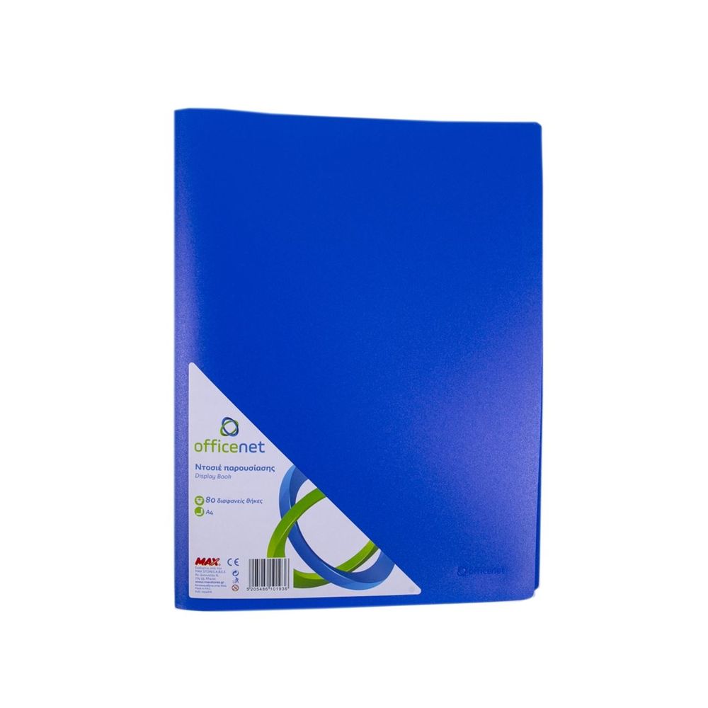 Ντοσιέ παρουσίασης για φύλλα Α4, εξοπλισμένο με 80 διαφανείς θήκες. Κατασκευασμένο από ανθεκτικό πλαστικό υλικό, αποτελεί την ιδανική επιλογή για την οργάνωση και φύλαξη των εγγράφων σου.