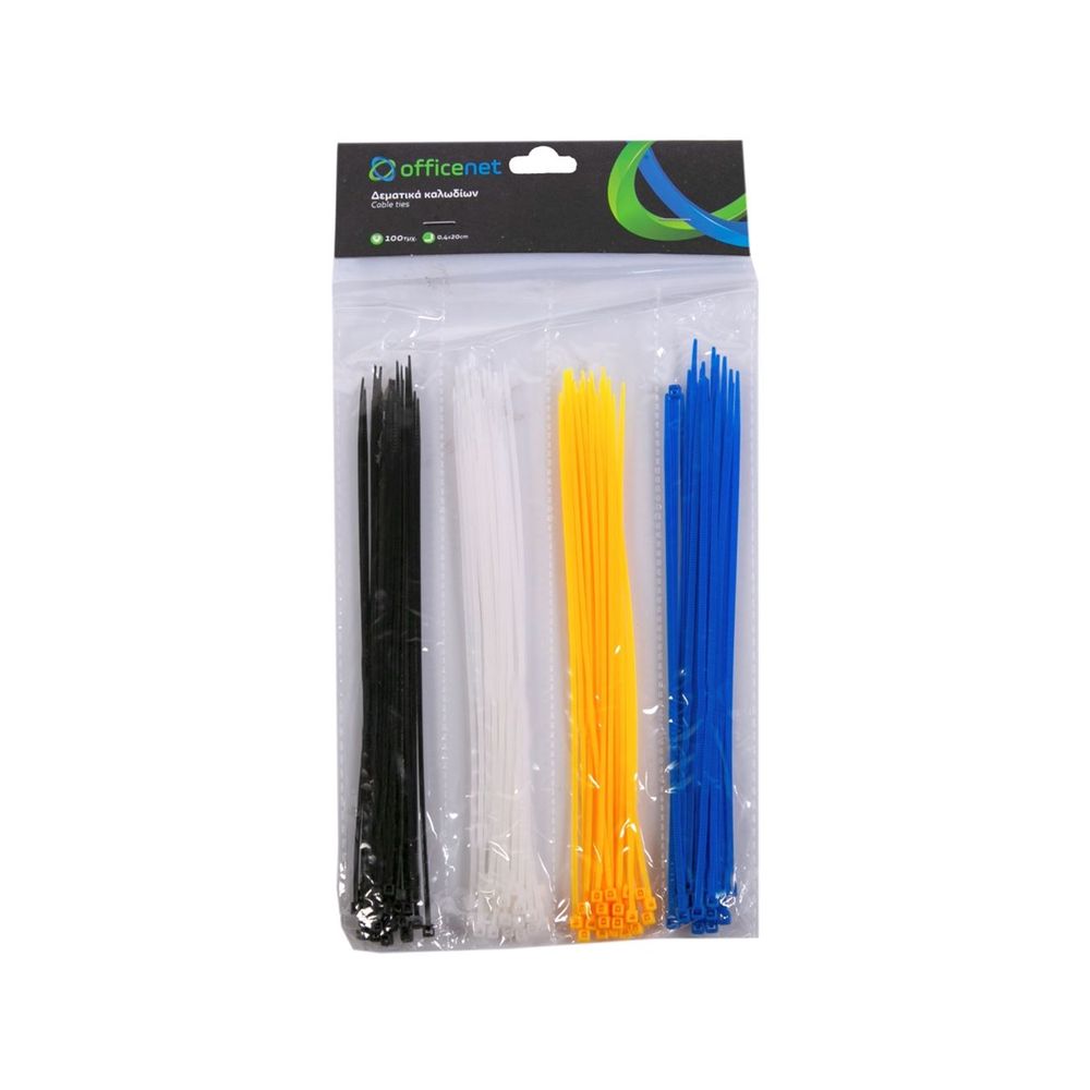 Σετ 100 τεμαχίων πολύχρωμα δεματικά κλιπ Officenet, μήκους 25 εκατοστών. Ιδανικά για οργάνωση και τακτοποίηση καλωδίων, σάκων και άλλων αντικειμένων. Ανθεκτικά και εύκολα στη χρήση, προσφέρουν πρακτικές λύσεις για κάθε χώρο.