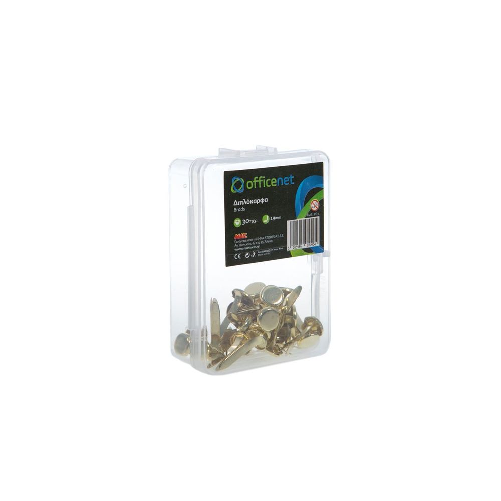 Διπλόκαρφα χρυσά Officenet κατάλληλα για τη στερέωση εγγράφων και πολλαπλές χρήσεις στο γραφείο. Διαθέτουν μέγεθος 19mm και η συσκευασία περιλαμβάνει 30 τεμάχια. Ιδανικά για την οργάνωση των εγγράφων σου.