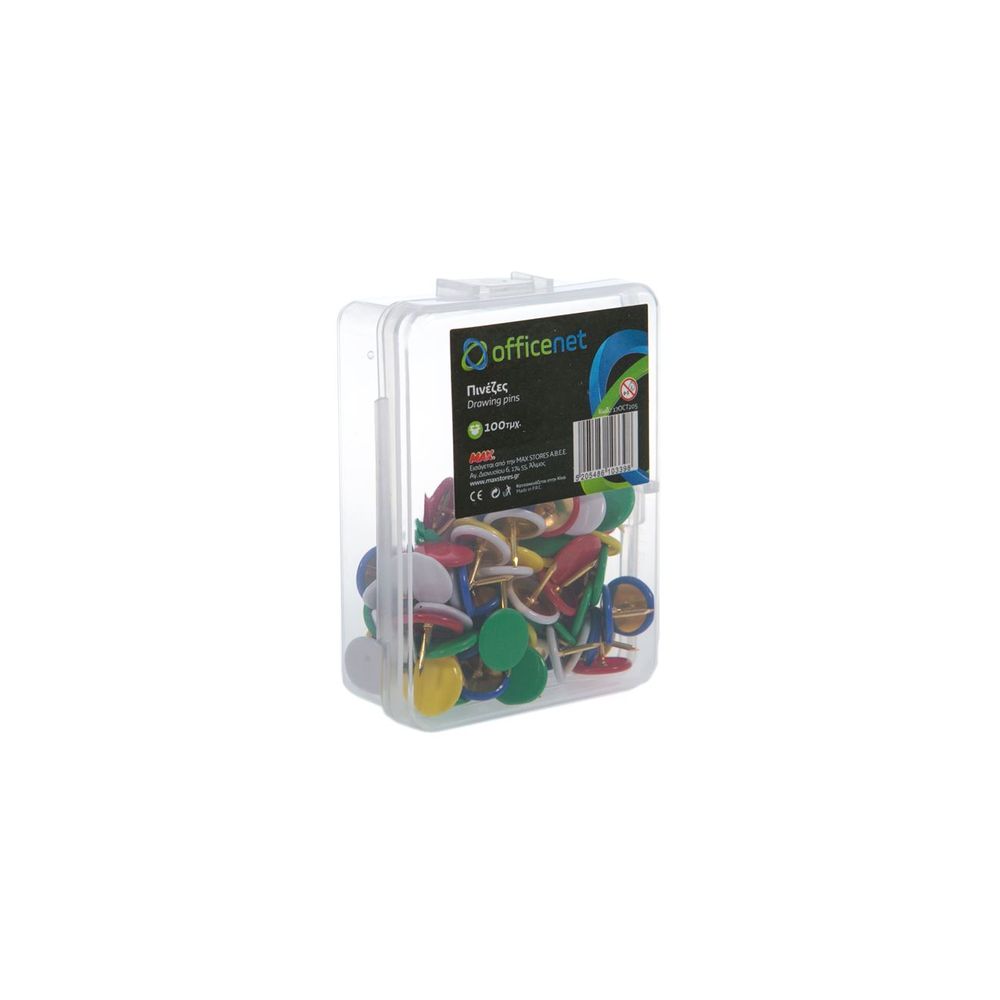Πινέζες χρωματιστές Officenet για τον πίνακα ανακοινώσεων και πολλαπλές χρήσεις στο σπίτι ή το γραφείο. Η συσκευασία περιλαμβάνει 100 τεμάχια, προσφέροντάς σου όλα όσα χρειάζεσαι για την οργάνωση των σημειώσεων και των υπενθυμίσεών σου.