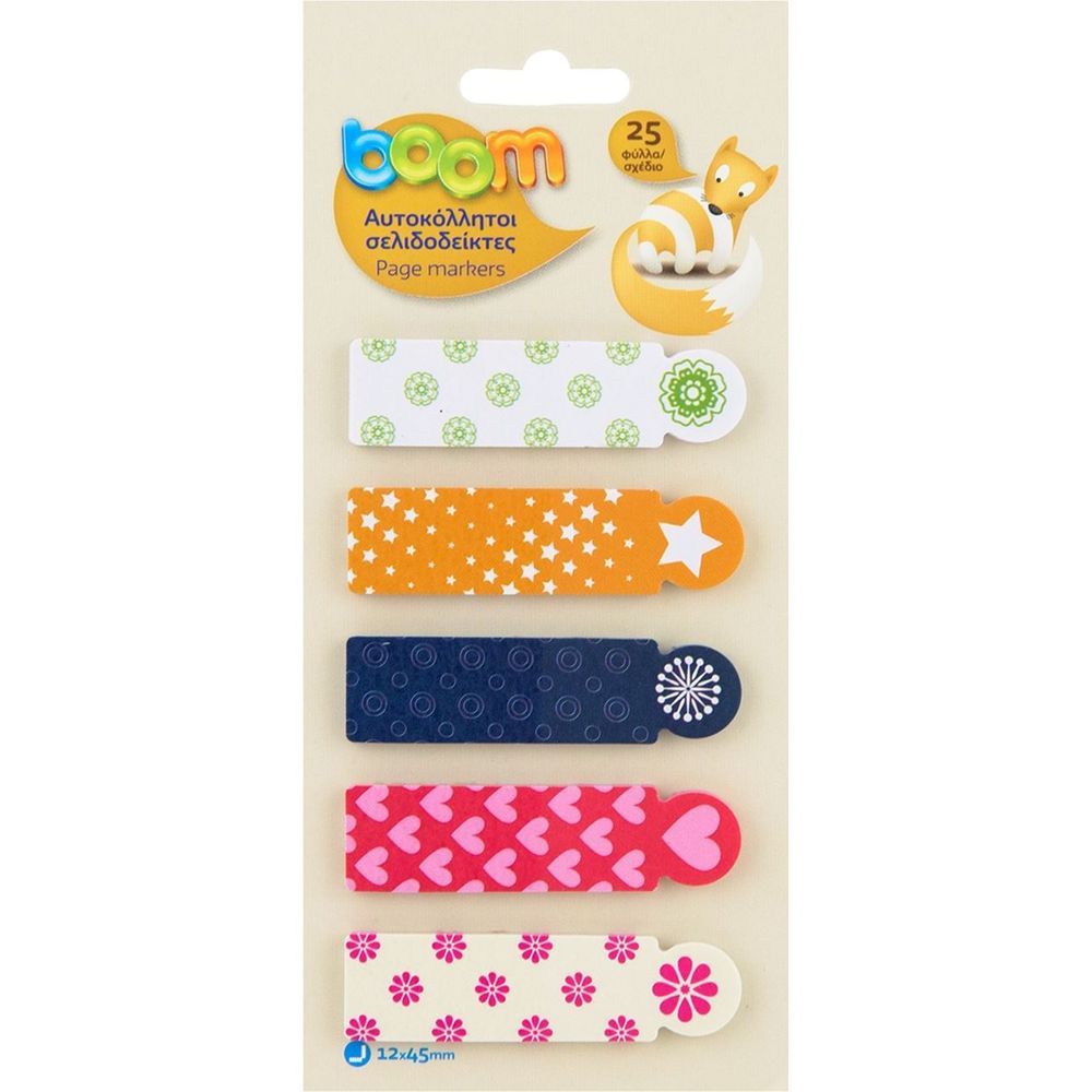 Αυτοκόλλητοι σελιδοδείκτες με χαρούμενα σχέδια καρδιών και λουλουδιών. Κάθε σετ περιλαμβάνει 5 μπλοκ των 25 φύλλων, ιδανικά για να οργανώσεις και να σημειώσεις τις σελίδες σου με στυλ. Διαστάσεις 12x45mm για εύκολη χρήση σε βιβλία και σημειωματάρια.