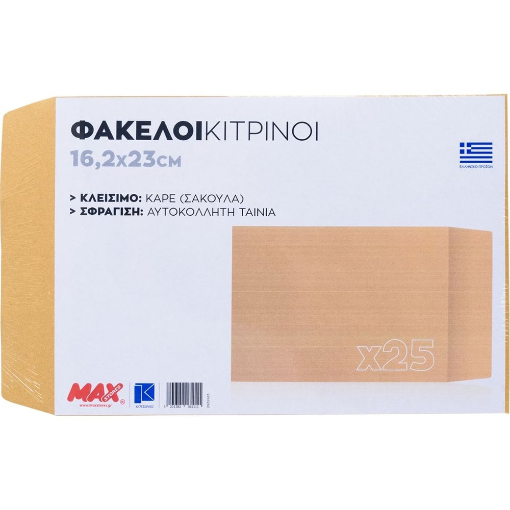 Σετ 25 κίτρινων φακέλων με αυτοκόλλητη ταινία σφραγίσματος, διαστάσεων 16 x 22 εκατοστών. Ιδανικοί για την αποστολή και αποθήκευση των εγγράφων σου με ασφάλεια. Ανακάλυψε την πρακτική λύση για την οργάνωση και διαχείριση της αλληλογραφίας σου.