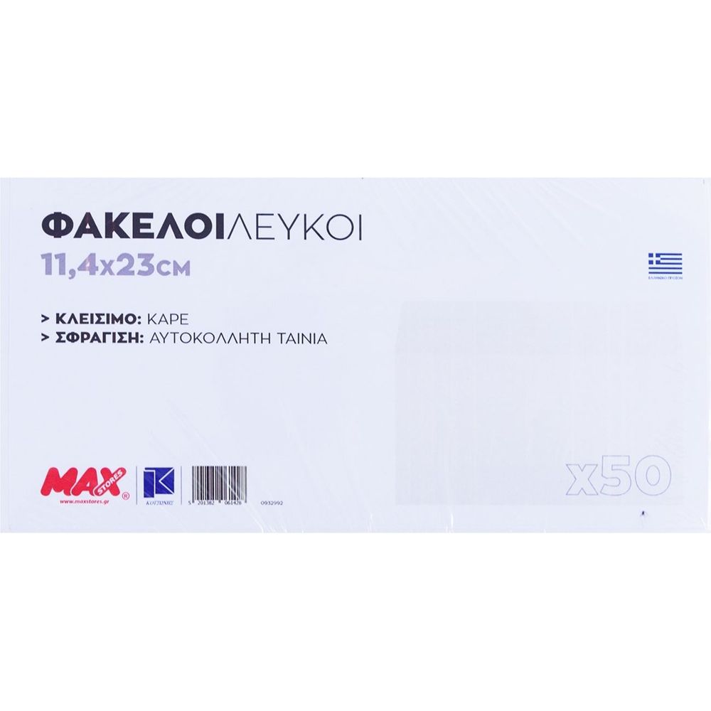 Φάκελα λευκά αυτοκόλλητα, σε πρακτικές διαστάσεις 11.4 x 22.9 εκατοστά. Συσκευασία των 50 τεμαχίων, ιδανική για την αποστολή προσωπικής και επαγγελματικής αλληλογραφίας. Διάλεξε τη συσκευασία που καλύπτει τις ανάγκες σου.