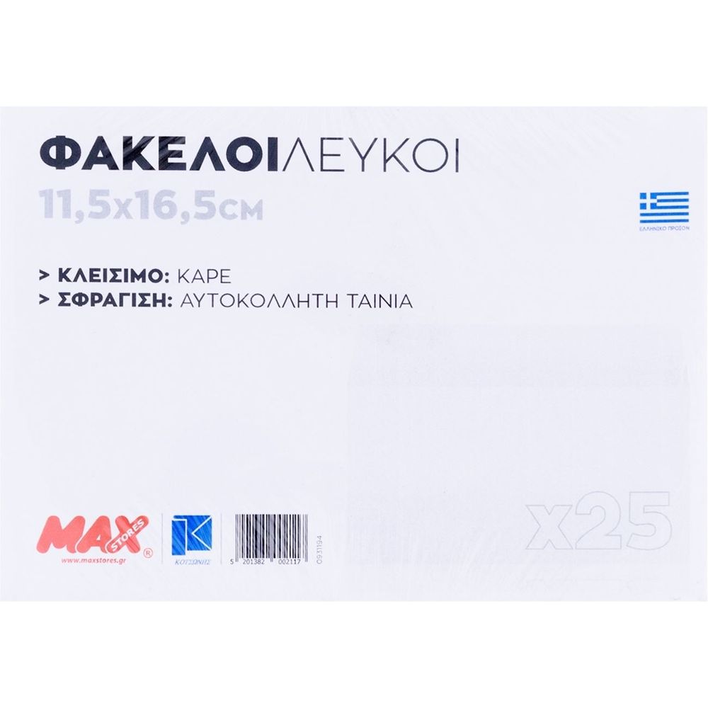 Φάκελοι αλληλογραφίας λευκού χρώματος με διαστάσεις 11.5 x 16.2 cm. Κατάλληλοι για την αποστολή προσωπικών επιστολών και μικρών εγγράφων. Διατίθενται σε οικονομική συσκευασία των 25 τεμαχίων. Ιδανικοί για την καθημερινή σου αλληλογραφία.