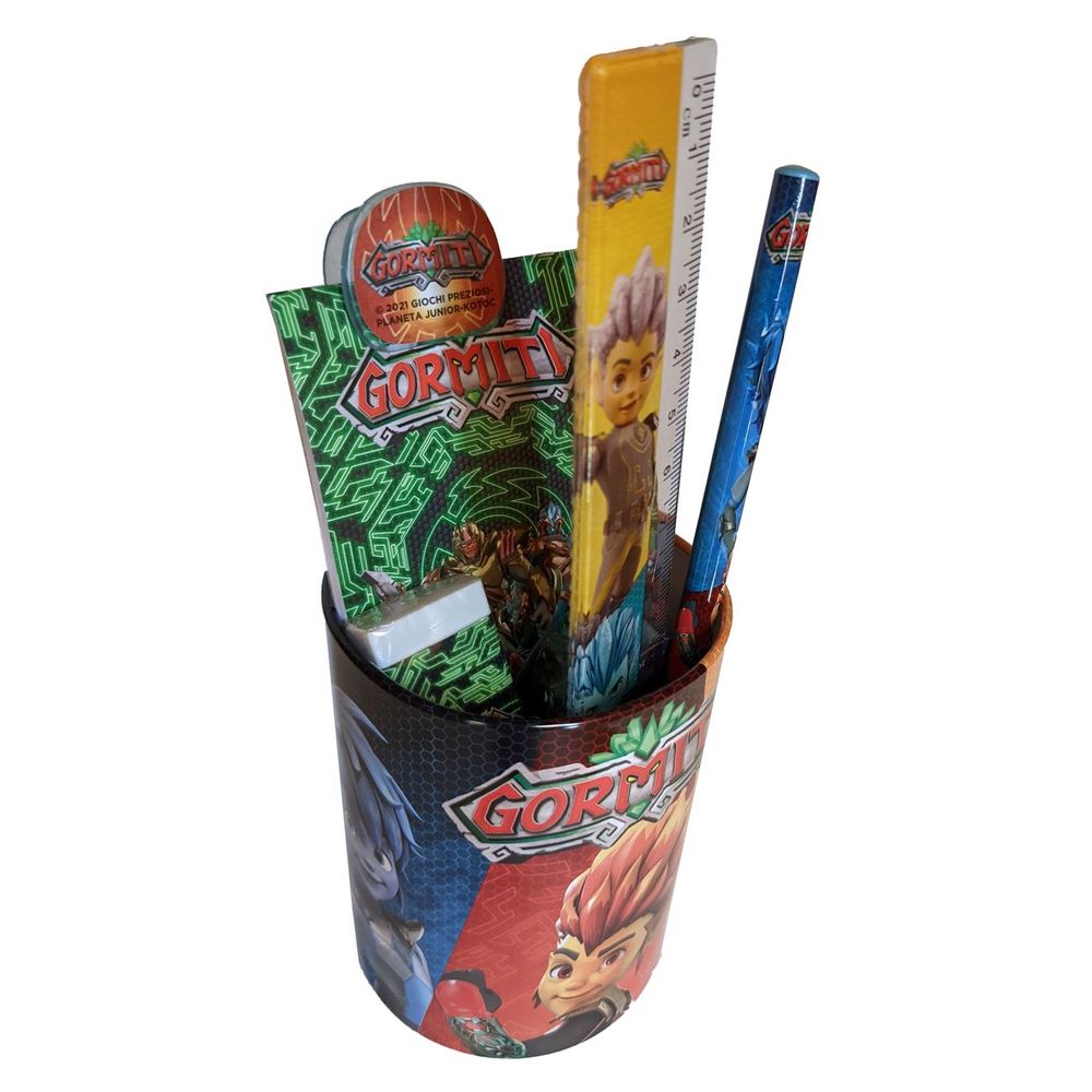 Περιλαμβάνει 1 μπολάκι, γόμα,μολύβι, χάρακα, ξύστρα, κλιπ, μεταλλική μολυβοθήκη