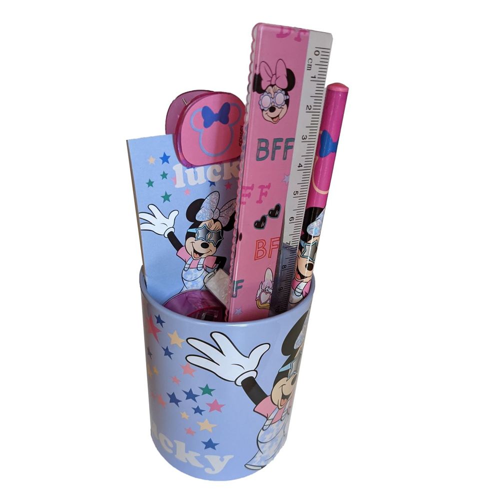 Περιλαμβάνει 1 μπολάκι, γόμα,μολύβι, χάρακα, ξύστρα, κλιπ, μεταλλική μολυβοθήκη